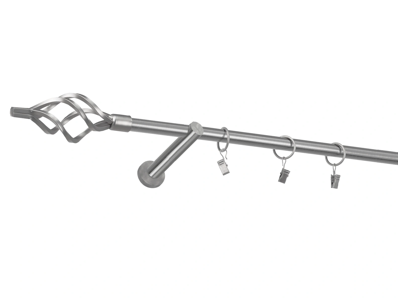 • Dĺžka 1600 mm - tyč 16mm - 1600mm - 1ks, držiak - 2ks, koncovka - 2ks, krúžok so štipcom - 15ks (pri výbere parametra príslušenstvo s krúžkami so štipcom), skrutky a hmoždinky na montáž
