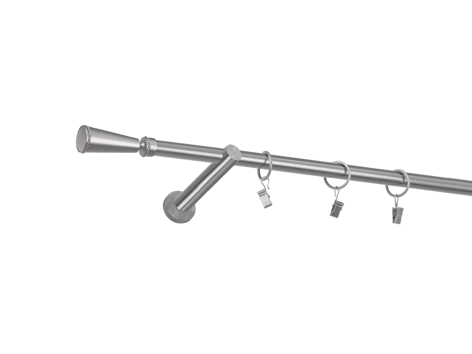 • Dĺžka 2200 mm - tyč 16mm - 2200mm - 1ks, držiak - 2ks, koncovka - 2ks, krúžok so štipcom - 21ks (pri výbere parametra príslušenstvo s krúžkami so štipcom), skrutky a hmoždinky na montáž