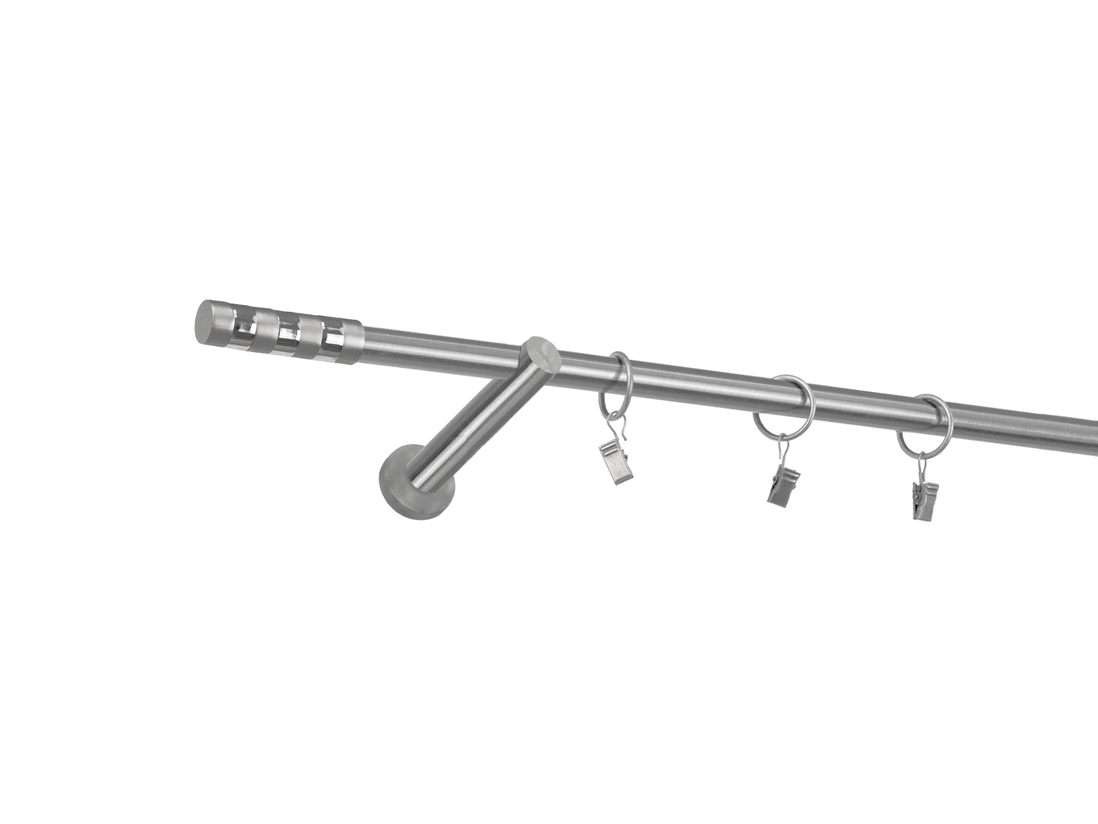 • Dĺžka 1600 mm - tyč 16mm - 1600mm - 1ks, držiak - 2ks, koncovka - 2ks, krúžok so štipcom - 15ks (pri výbere parametra príslušenstvo s krúžkami so štipcom), skrutky a hmoždinky na montáž