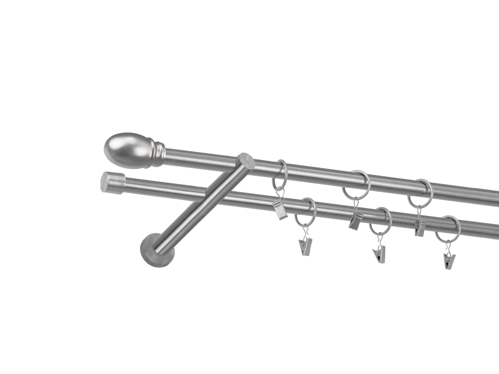 • Dĺžka 2200 mm - tyč 16mm - 2200mm - 2ks, držiak dvojitý - 2ks, koncovka - 2ks, koncovka zadná (PULLO) - 2ks, krúžok so štipcom - 42ks (pri výbere parametra príslušenstvo s krúžkami so štipcom), skrutky a hmoždinky na montáž