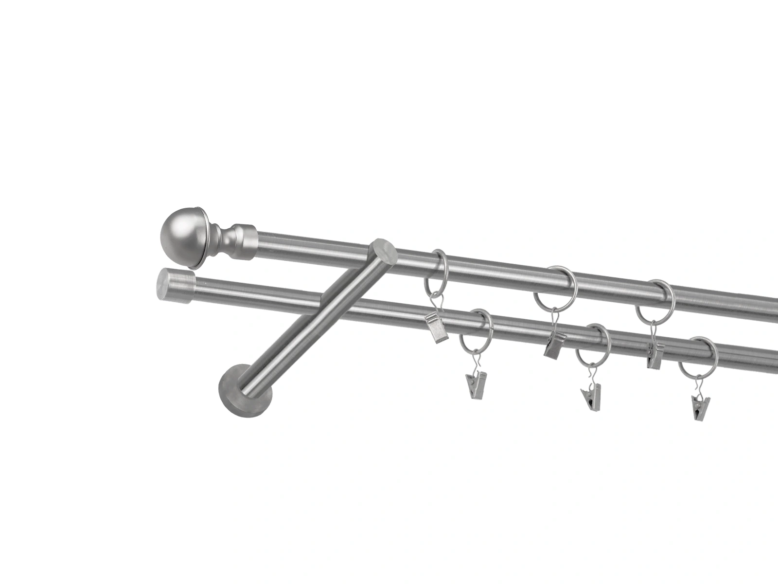 • Dĺžka 2200 mm - tyč 16mm - 2200mm - 2ks, držiak dvojitý - 2ks, koncovka - 2ks, koncovka zadná (PULLO) - 2ks, krúžok so štipcom - 42ks (pri výbere parametra príslušenstvo s krúžkami so štipcom), skrutky a hmoždinky na montáž