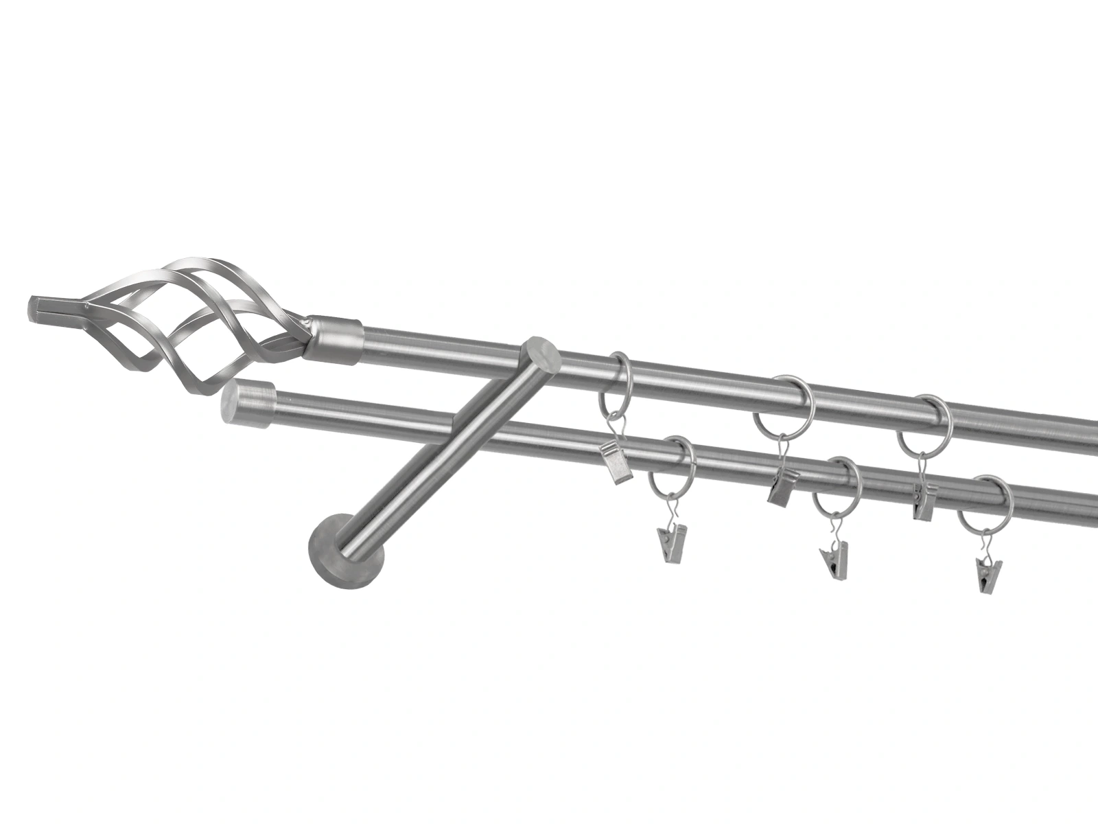 • Dĺžka 2200 mm - tyč 16mm - 2200mm - 2ks, držiak dvojitý - 2ks, koncovka - 2ks, koncovka zadná (PULLO) - 2ks, krúžok so štipcom - 42ks (pri výbere parametra príslušenstvo s krúžkami so štipcom), skrutky a hmoždinky na montáž