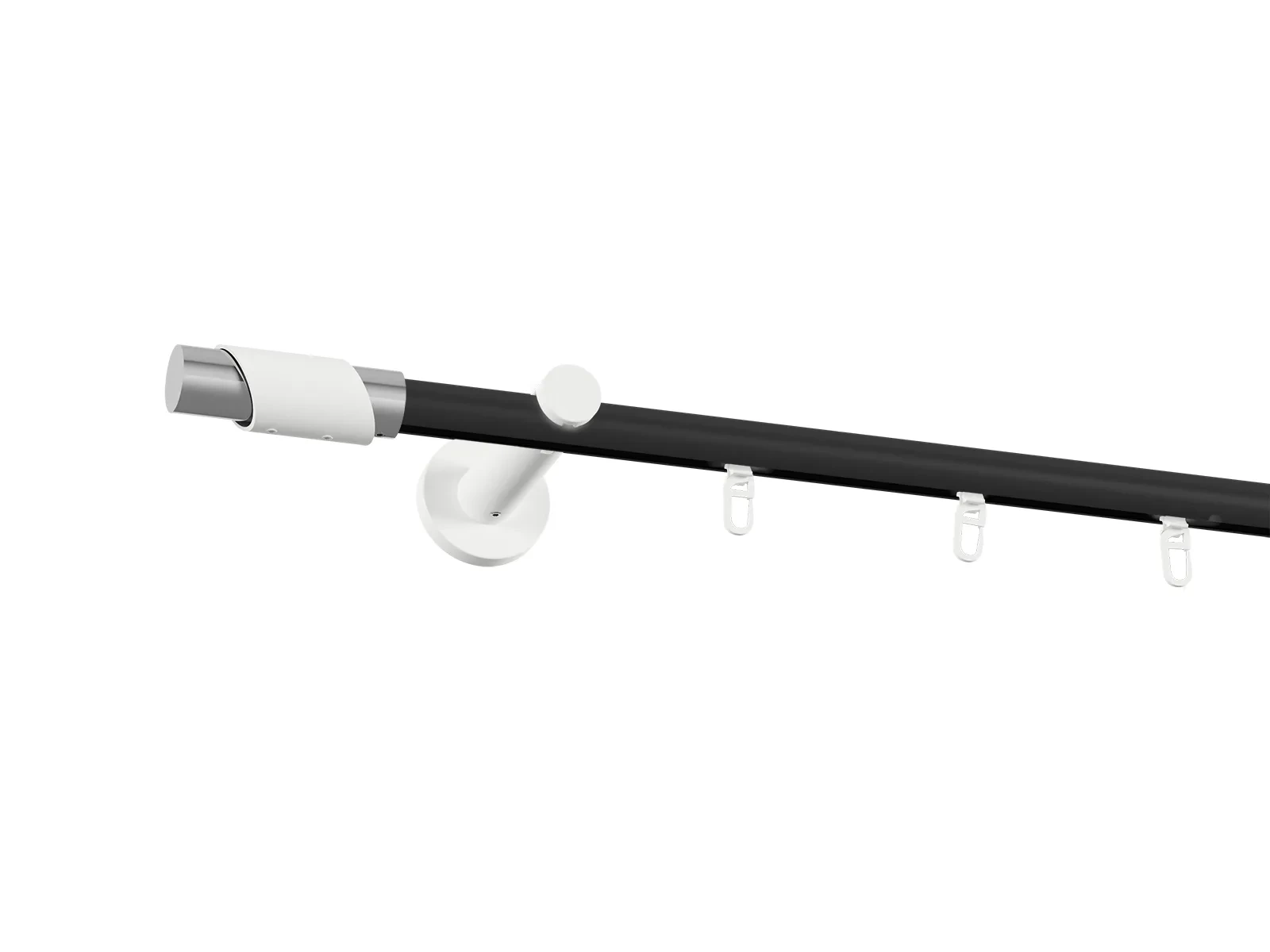 Pri tomto prevedení je tyč v čiernej farbe a príslušenstvo ako držiaky, koncovky a štipce v bielej farbe.