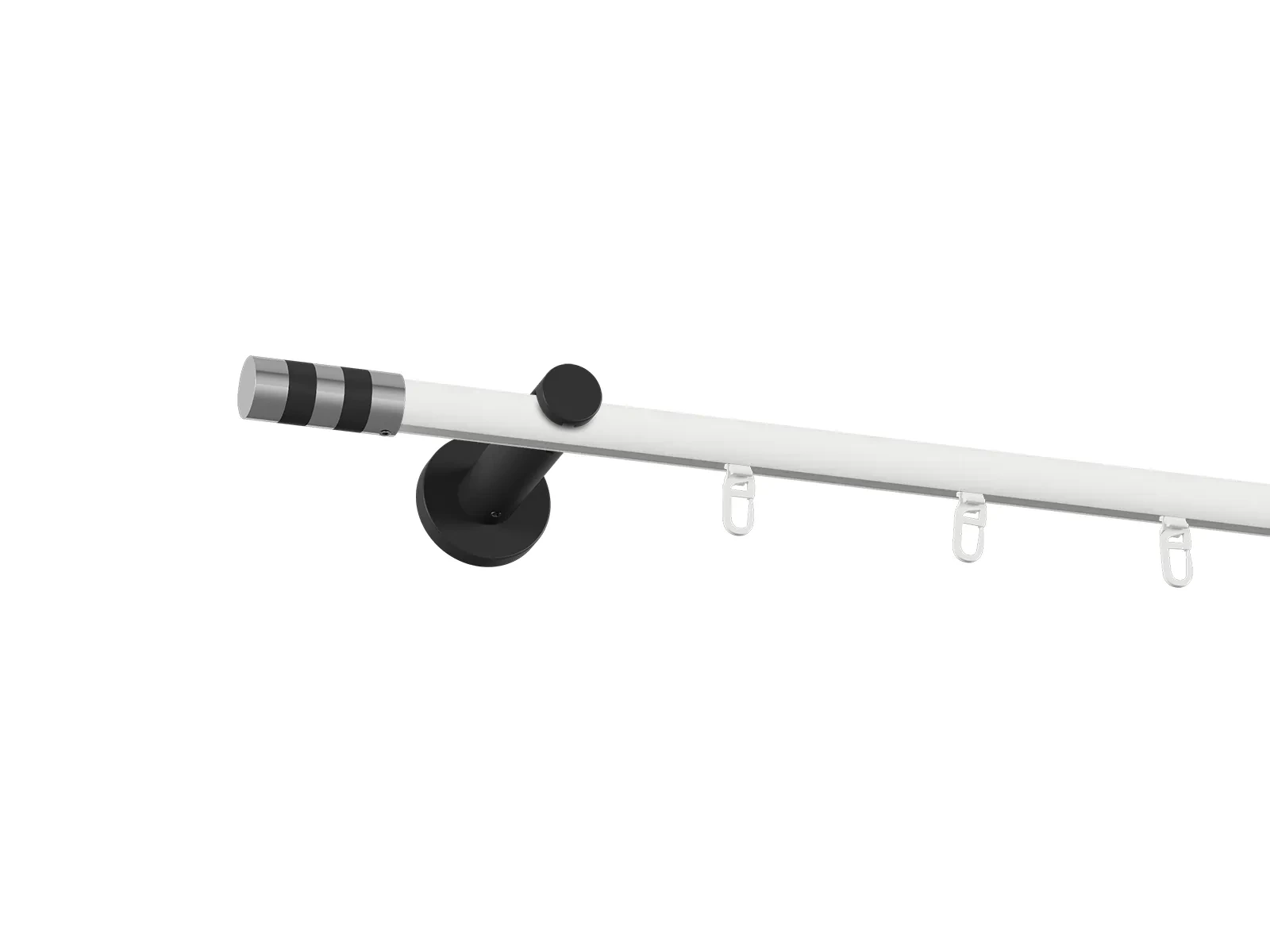 Čierne a biele kovové rúrky pre garniže s klasickým a drážkovým profilom