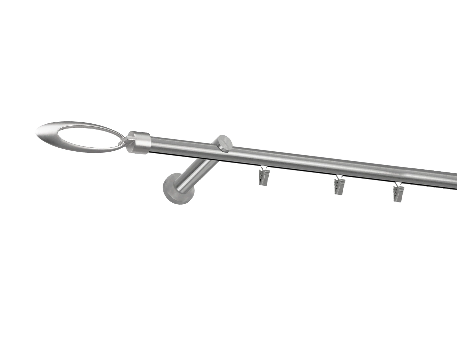 Jednoradová garniža s povrchovou úpravou - odtieň satin-nikel (matné striebro). Celokovové garniže s kvalitnou povrchovou úpravou - galvanické pokovovanie. Galvanické pokovovanie zabezpečuje vyššiu povrchovú tvrdosť, zvýšenú dolnosť voči poškriabaniu, hladký povrch. Dodávané sú v kompletoch.
