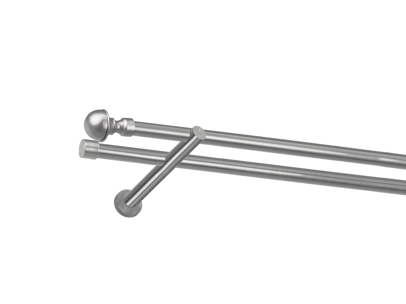 • Dĺžka 2200 mm - tyč 19mm - 2200mm - 2ks, držiak dvojitý - 2ks, koncovka - 2ks, koncovka zadná (PULLO) - 2ks, krúžok so štipcom - 42ks (pri výbere parametra príslušenstvo s krúžkami so štipcom), skrutky a hmoždinky na montáž