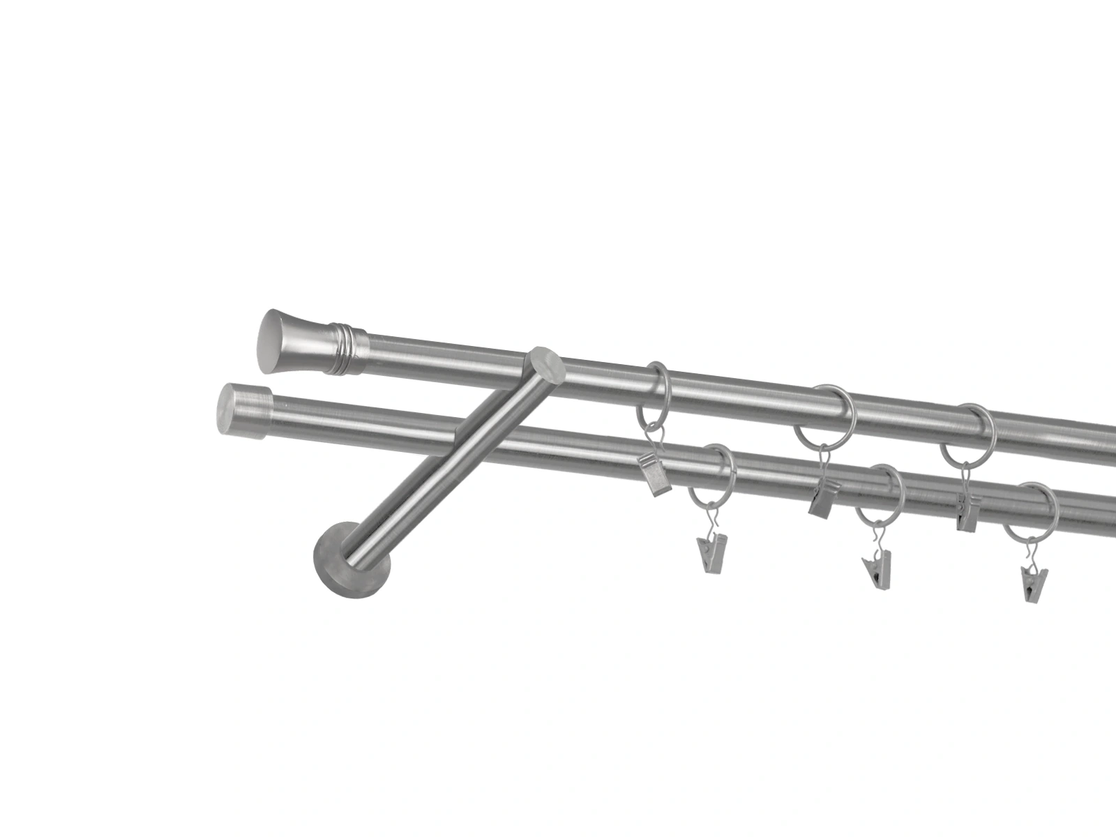 • Dĺžka 2200 mm - tyč 19mm - 2200mm - 2ks, držiak dvojitý - 2ks, koncovka - 2ks, koncovka zadná (PULLO) - 2ks, krúžok so štipcom - 42ks (pri výbere parametra príslušenstvo s krúžkami so štipcom), skrutky a hmoždinky na montáž