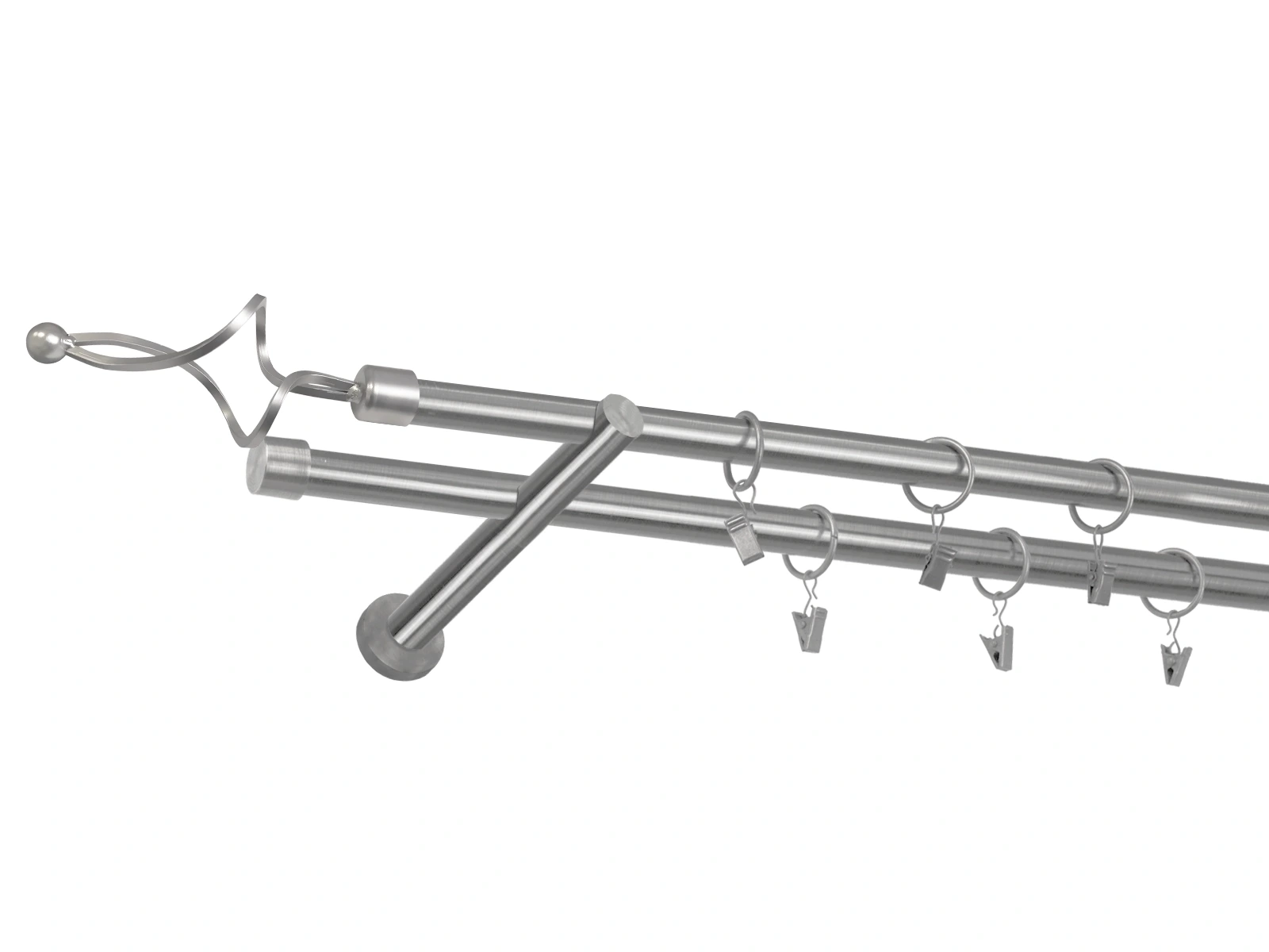 • Dĺžka 4400 mm - tyč 19mm - 2200mm - 4ks, spojka tyče – 2 ks, držiak dvojitý - 3ks, koncovka - 2ks, koncovka zadná (PULLO) -2ks, krúžok so štipcom - 84ks (pri výbere parametra príslušenstvo s krúžkami so štipcom), skrutky a hmoždinky na montáž