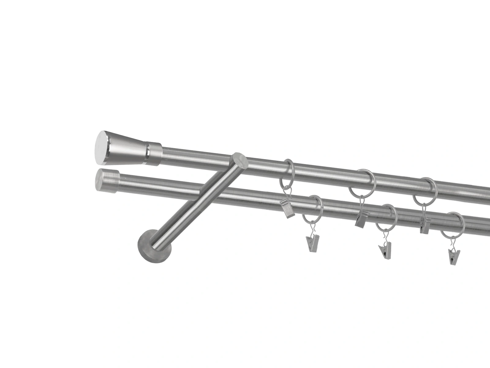 • Dĺžka 3600 mm - tyč 19mm - 1800mm - 4ks, spojka tyče – 2 ks, držiak dvojitý - 3ks, koncovka - 2ks, koncovka zadná (PULLO) -2ks, krúžok so štipcom - 68ks (pri výbere parametra príslušenstvo s krúžkami so štipcom), skrutky a hmoždinky na montáž
