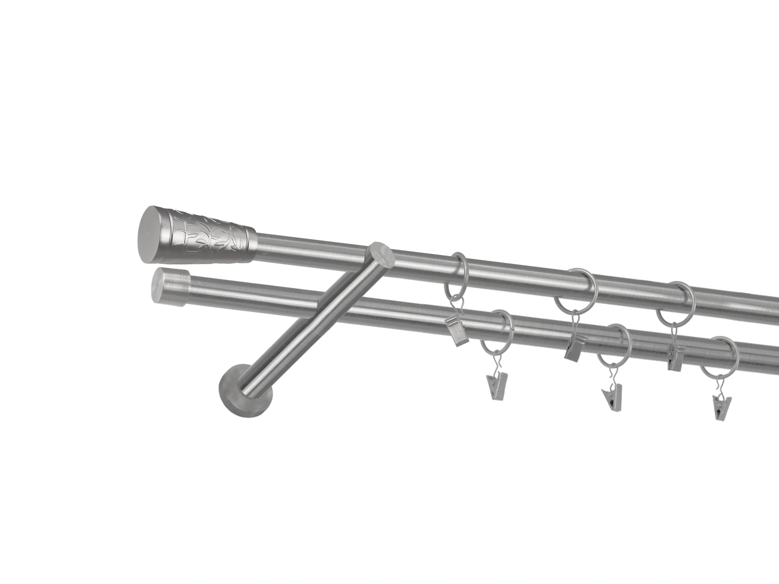 • Dĺžka 3200 mm - tyč 19mm - 1600mm - 4ks, spojka tyče – 2 ks, držiak dvojitý - 3ks, koncovka - 2ks, koncovka zadná (PULLO) -2ks, krúžok so štipcom - 60ks (pri výbere parametra príslušenstvo s krúžkami so štipcom), skrutky a hmoždinky na montáž