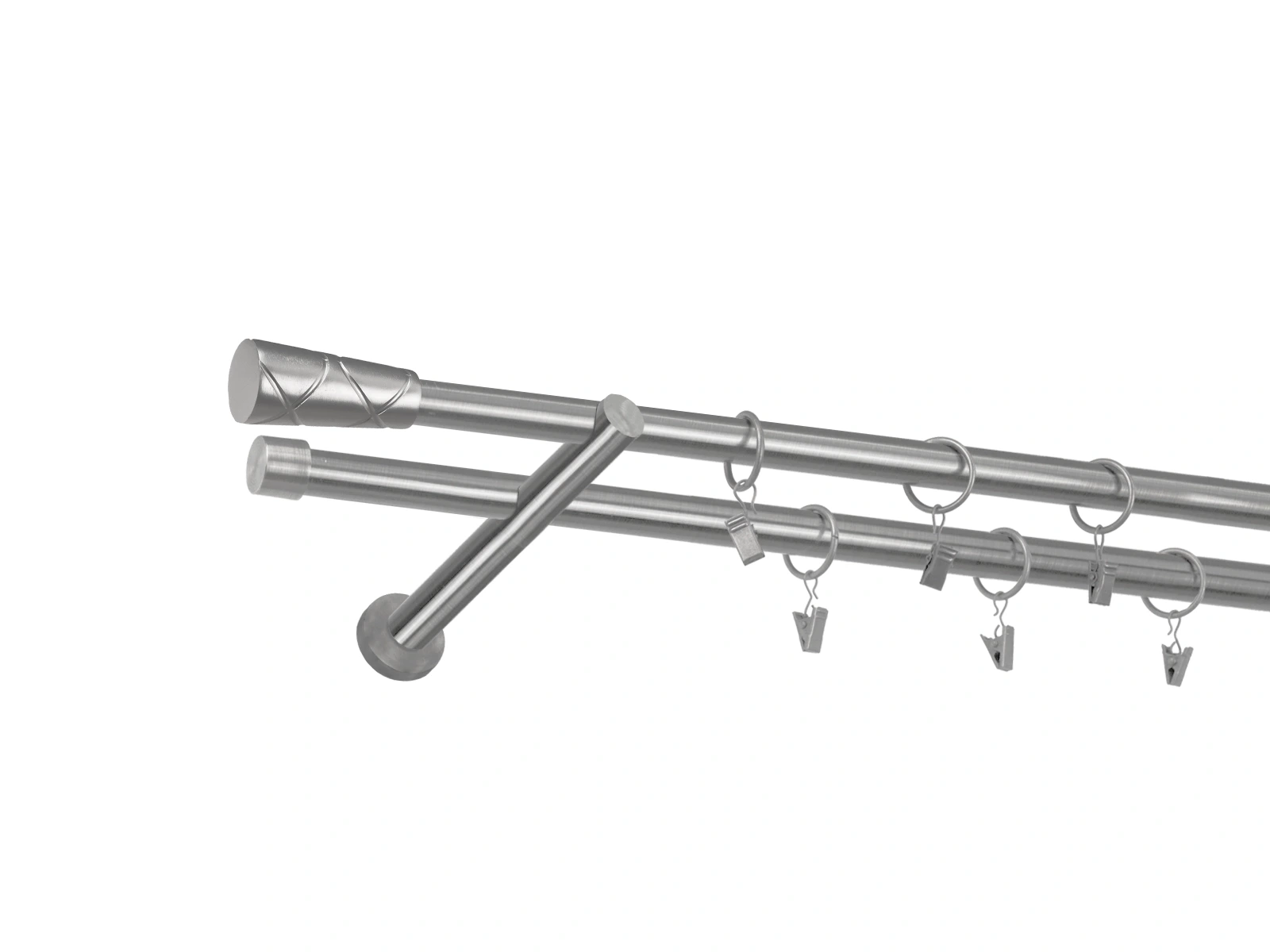 • Dĺžka 1600 mm - tyč 19mm - 1600mm - 2ks, držiak dvojitý - 2ks, koncovka - 2ks, koncovka zadná (PULLO) - 2ks, krúžok so štipcom - 30ks (pri výbere parametra príslušenstvo s krúžkami so štipcom), skrutky a hmoždinky na montáž