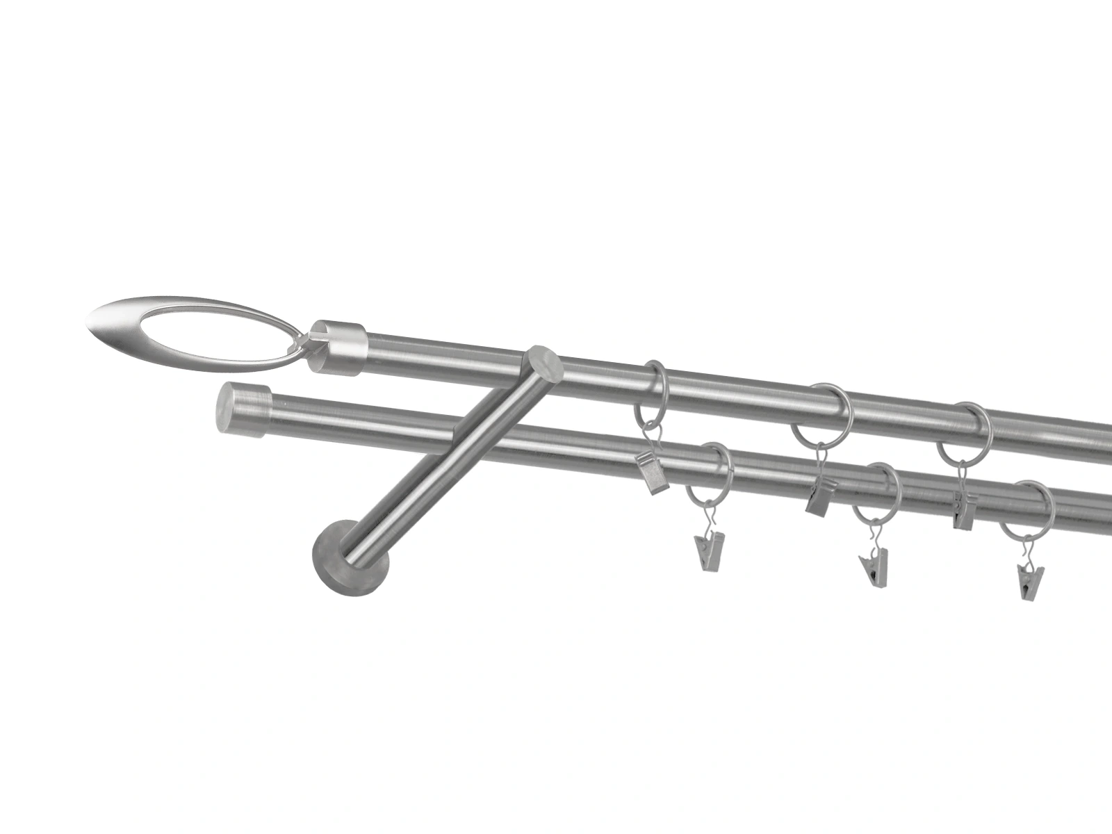 • Dĺžka 2200 mm - tyč 19mm - 2200mm - 2ks, držiak dvojitý - 2ks, koncovka - 2ks, koncovka zadná (PULLO) - 2ks, krúžok so štipcom - 42ks (pri výbere parametra príslušenstvo s krúžkami so štipcom), skrutky a hmoždinky na montáž