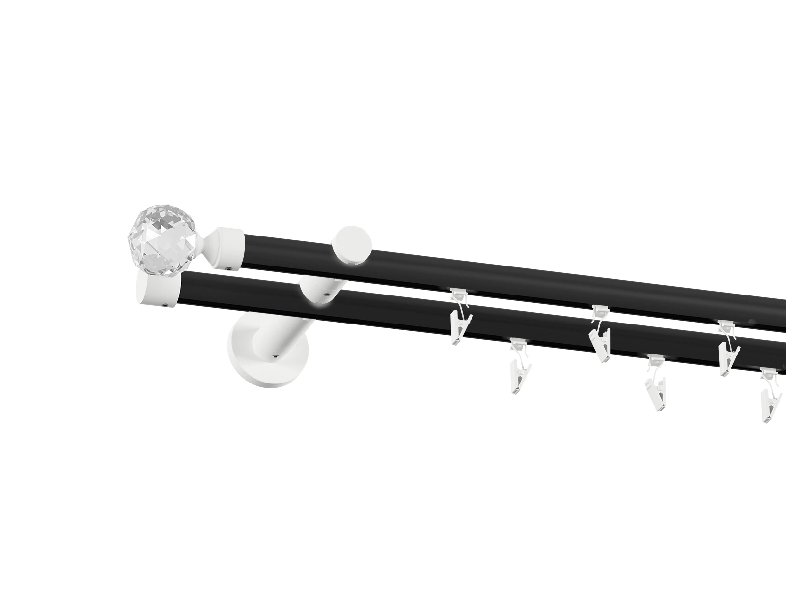 Pri tomto prevedení je tyč v čiernej farbe a príslušenstvo ako držiaky, koncovky a štipce v bielej farbe.