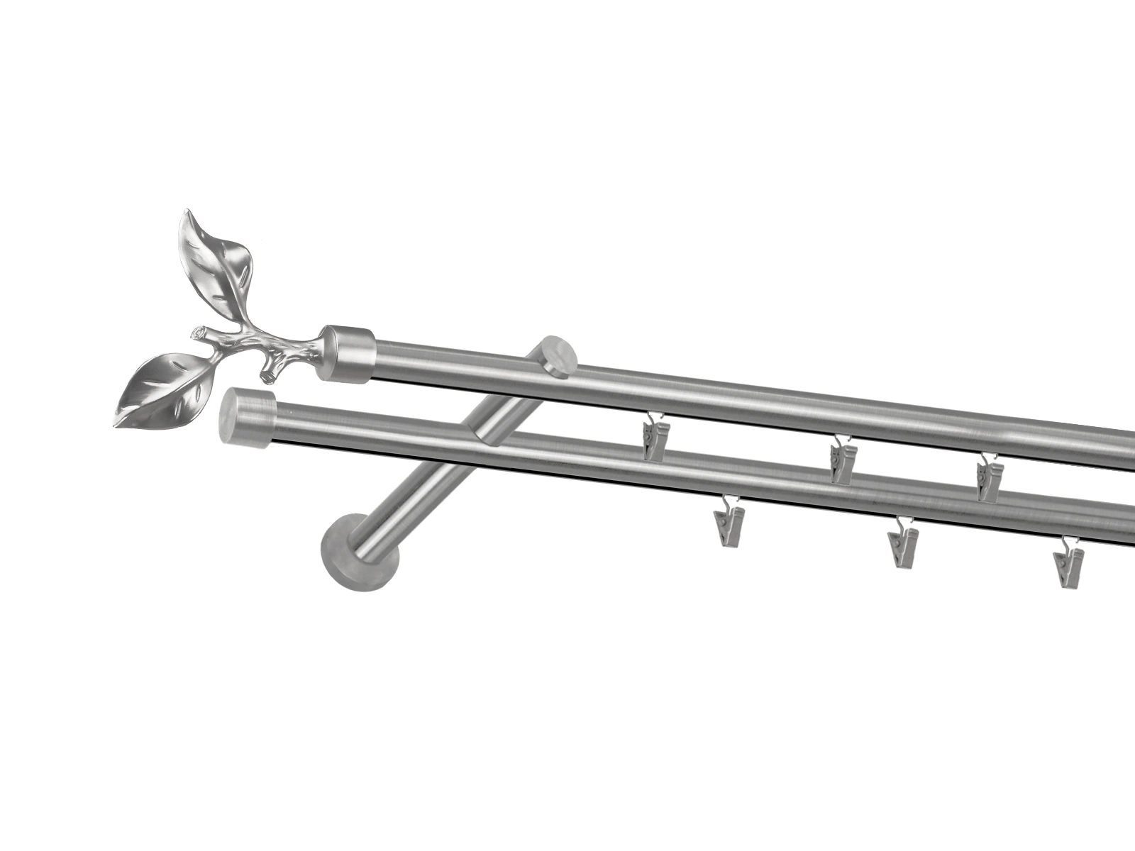 Dvojradová garniža s povrchovou úpravou - odtieň satin-nikel (matné striebro). Celokovové garniže s kvalitnou povrchovou úpravou - galvanické pokovovanie. Galvanické pokovovanie zabezpečuje vyššiu povrchovú tvrdosť, zvýšenú dolnosť voči poškriabaniu, hladký povrch. Dodávané sú v kompletoch.