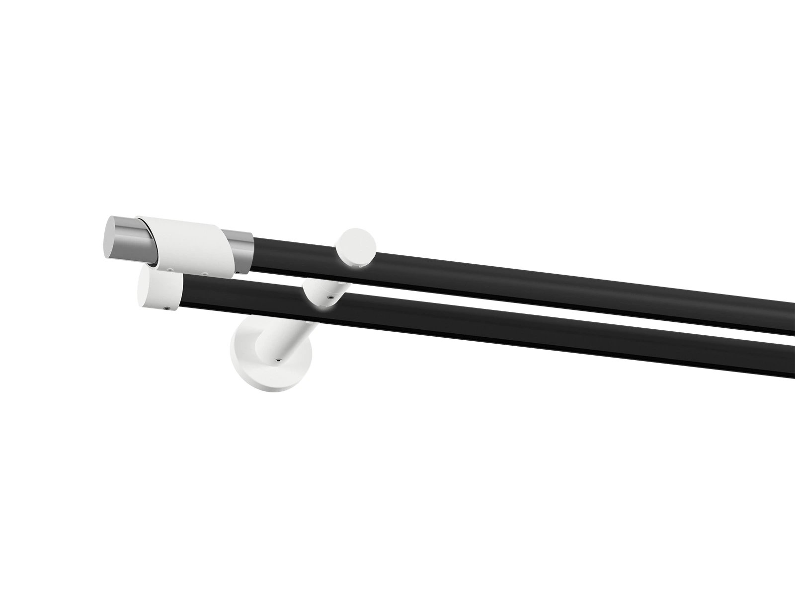 Pri tomto prevedení je tyč v čiernej farbe a príslušenstvo ako držiaky, koncovky a štipce v bielej farbe.