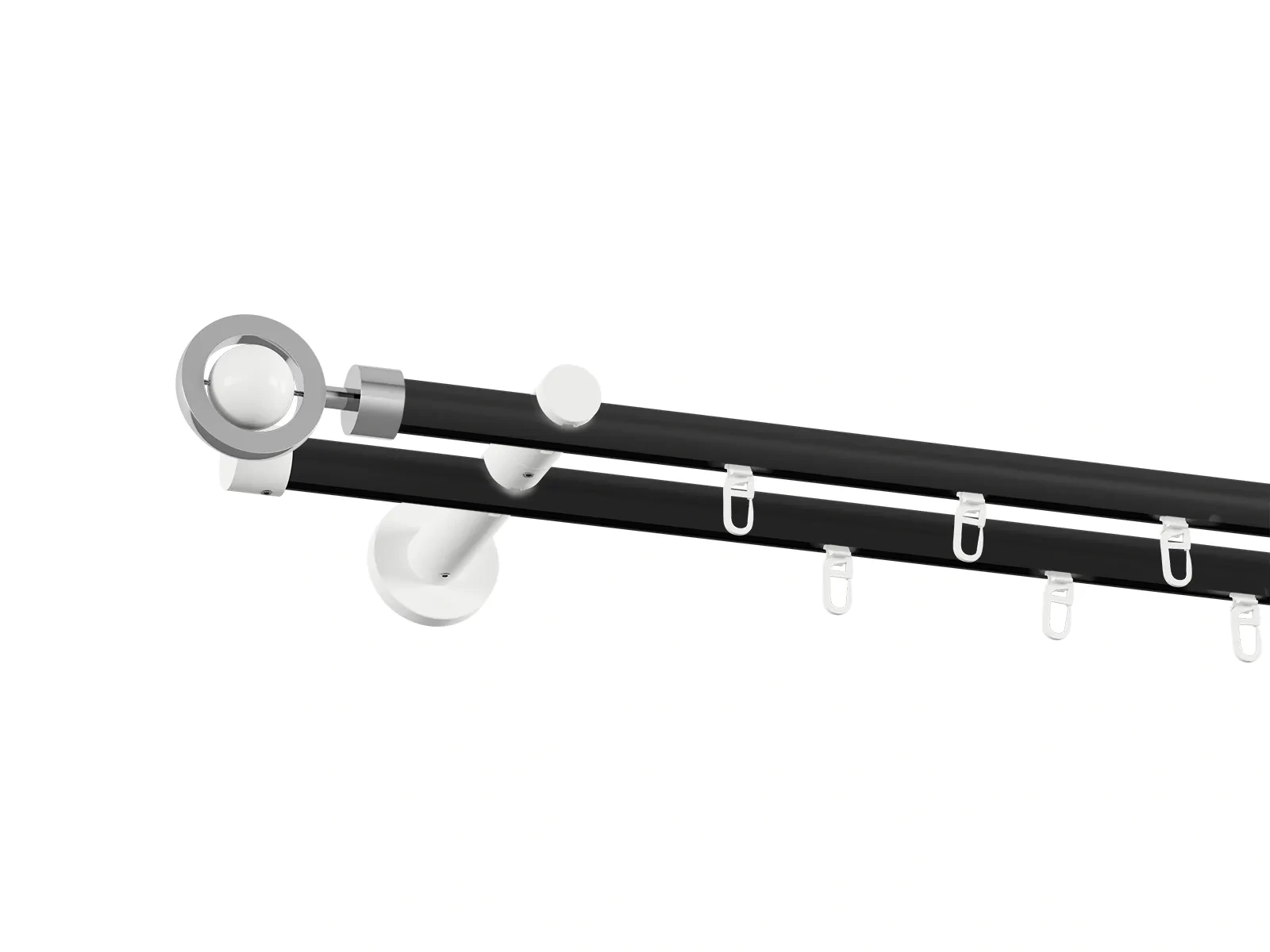 Čierne a biele kovové rúrky pre garniže s klasickým a drážkovým profilom