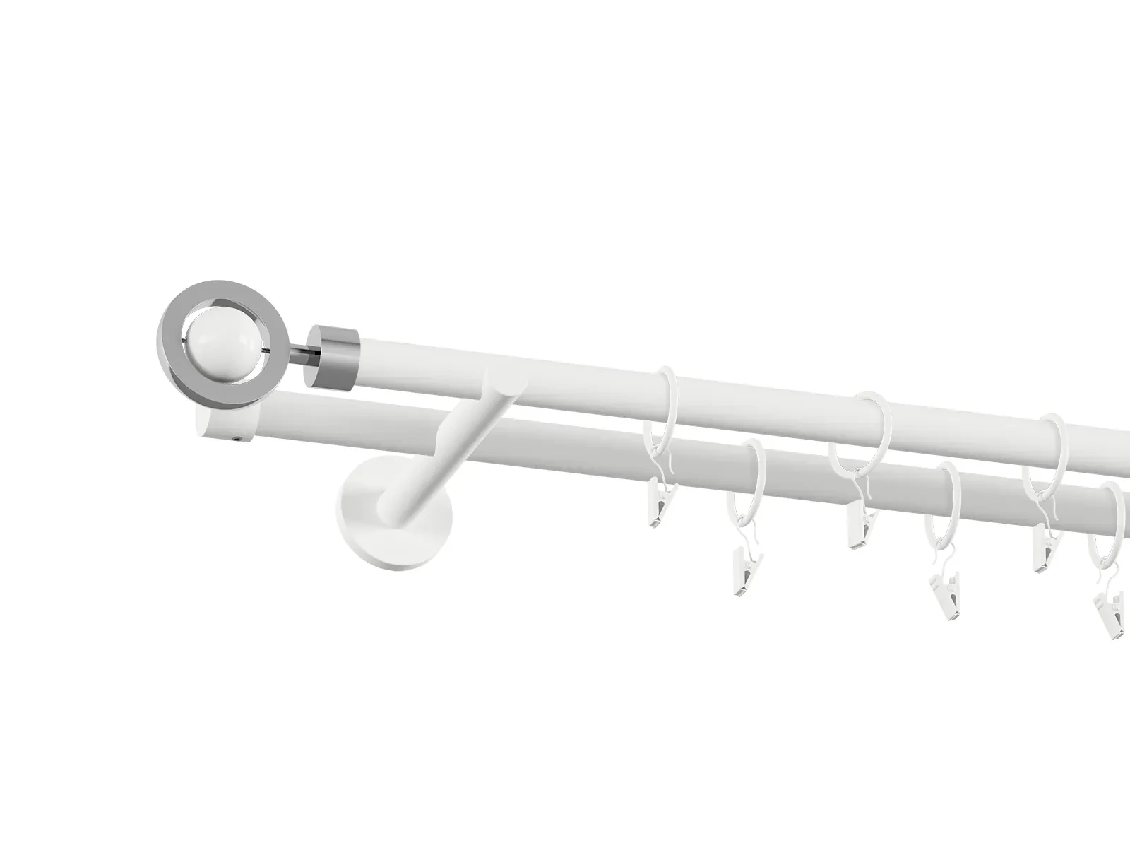 • Dĺžka 1600 mm - tyč 19mm - 1600mm - 2ks, držiak dvojitý - 2ks, koncovka - 2ks, koncovka zadná (PULLO) - 2ks, krúžok so štipcom - 30ks (pri výbere parametra príslušenstvo s krúžkami so štipcom), skrutky a hmoždinky na montáž