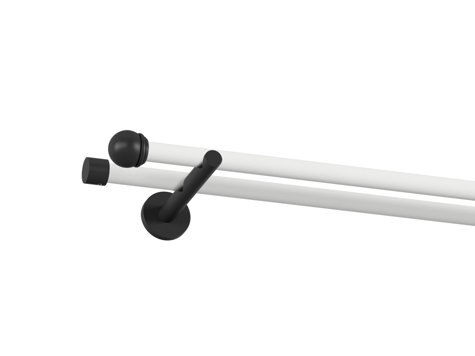Na výber je viacero typov koncoviek a držiakov, čo umožňuje prispôsobiť garnižu presne podľa štýlu interiéru - od jednoduchých a nenápadných tvarov až po dizajnovejšie ukončenia, ktoré môžu slúžiť aj ako dekoratívny prvok. Pri prevedení bielo čiernej tyče je tyč biela a koncovky, držiaky a štipce s krúžkami čierne. Veľkou výhodou obyčajnej tyče je jej univerzálnosť. Ak máte závesy, v ktorých sú už našité kovové alebo textilné očká (krúžky), nie je potrebné dokupovať krúžky so štipcami. Záves stačí jednoducho nasunúť priamo na tyč, čo šetrí čas aj náklady a zároveň zabezpečuje čistý vzhľad.