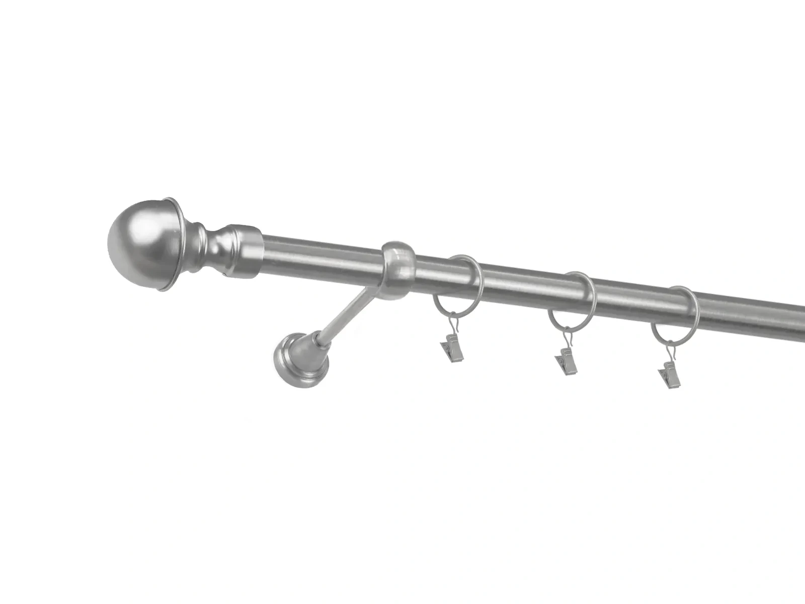 Dĺžka 1800 mm - tyč 25mm - 1800mm - 1ks, držiak - 2ks, koncovka - 2ks, krúžok so štipcom - 17ks (pri výbere parametra príslušenstvo s krúžkami so štipcom), skrutky a hmoždinky na montáž