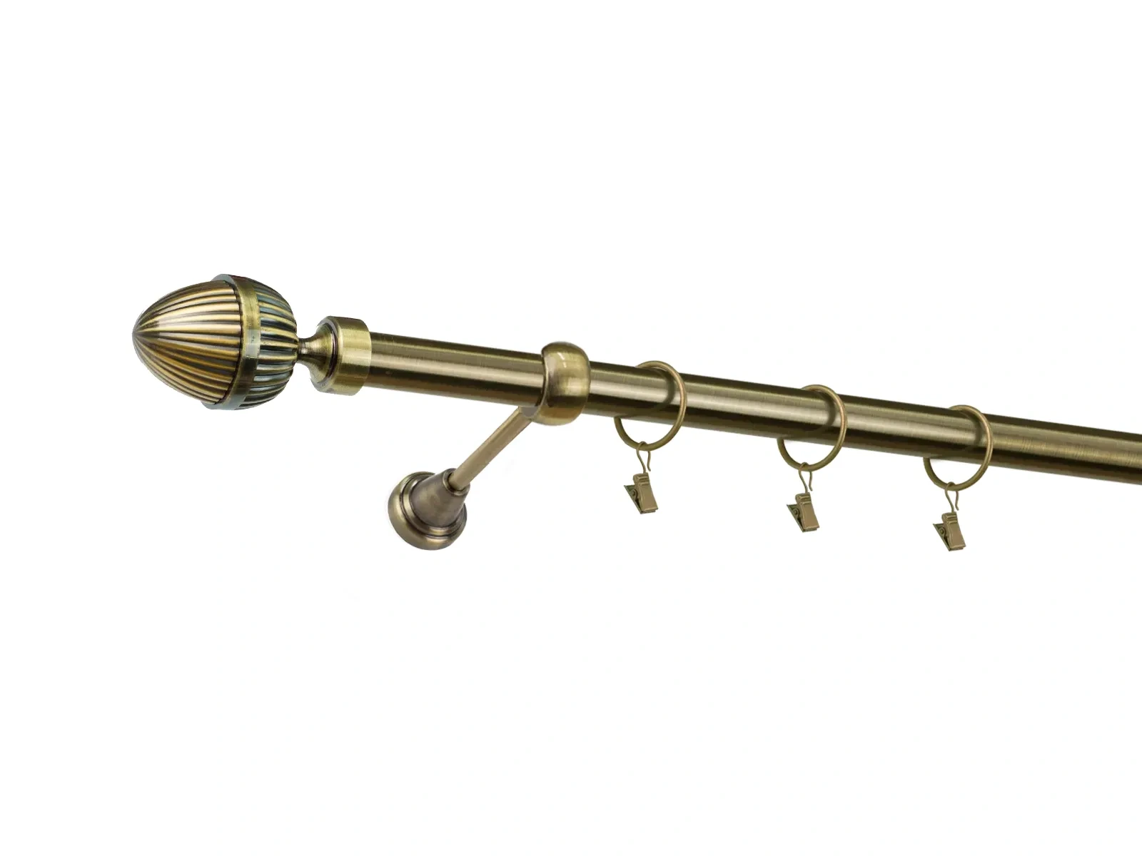 • Dĺžka 2200 mm - tyč 25mm - 2200mm - 1ks, držiak - 2ks, koncovka - 2ks, krúžok so štipcom - 21ks (pri výbere parametra príslušenstvo s krúžkami so štipcom), skrutky a hmoždinky na montáž