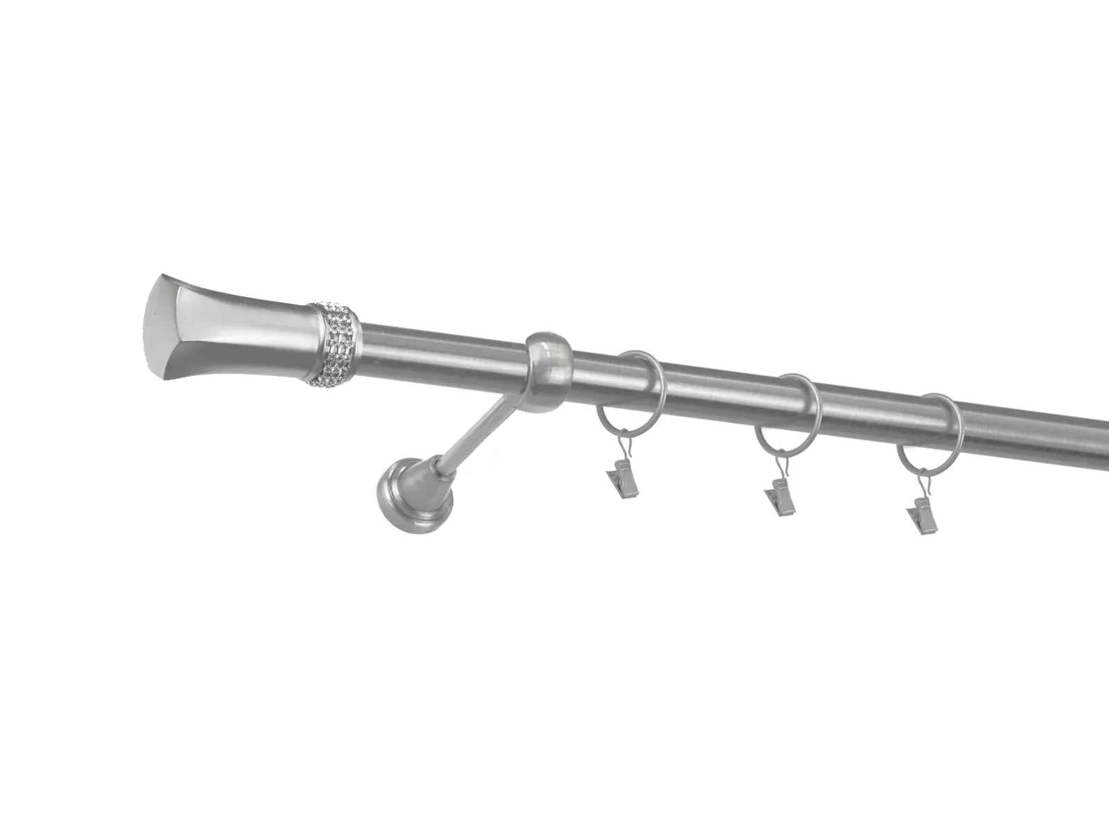 • Dĺžka 1600 mm - tyč 25mm - 1600mm - 1ks, držiak - 2ks, koncovka - 2ks, krúžok so štipcom - 15ks (pri výbere parametra príslušenstvo s krúžkami so štipcom), skrutky a hmoždinky na montáž