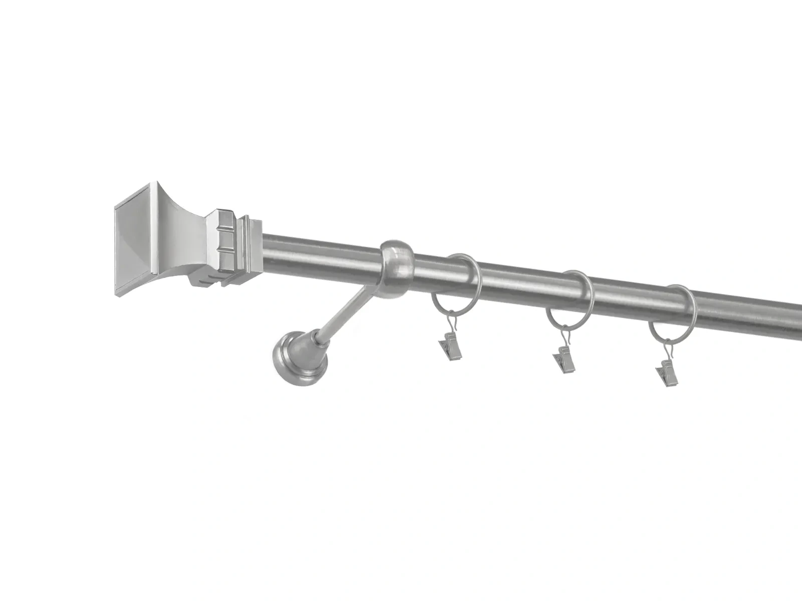 • Dĺžka 2200 mm - tyč 25mm - 2200mm - 1ks, držiak - 2ks, koncovka - 2ks, krúžok so štipcom - 21ks (pri výbere parametra príslušenstvo s krúžkami so štipcom), skrutky a hmoždinky na montáž