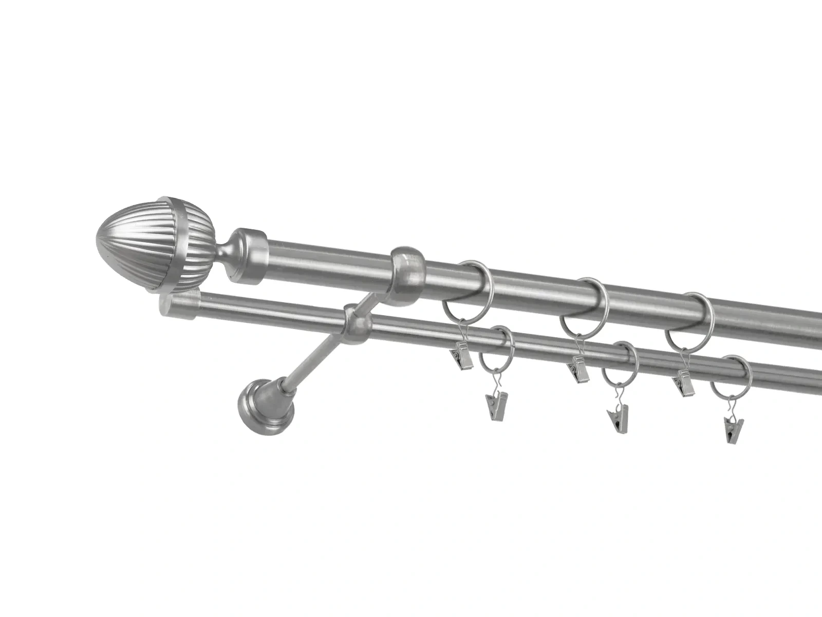 Kvalitné kovové garniže o priemere prednej tyče 25mm a zadnej 16mm. Všetky tyče, koncovky a držiaky sú s povrchovou úpravou galvanizácie.