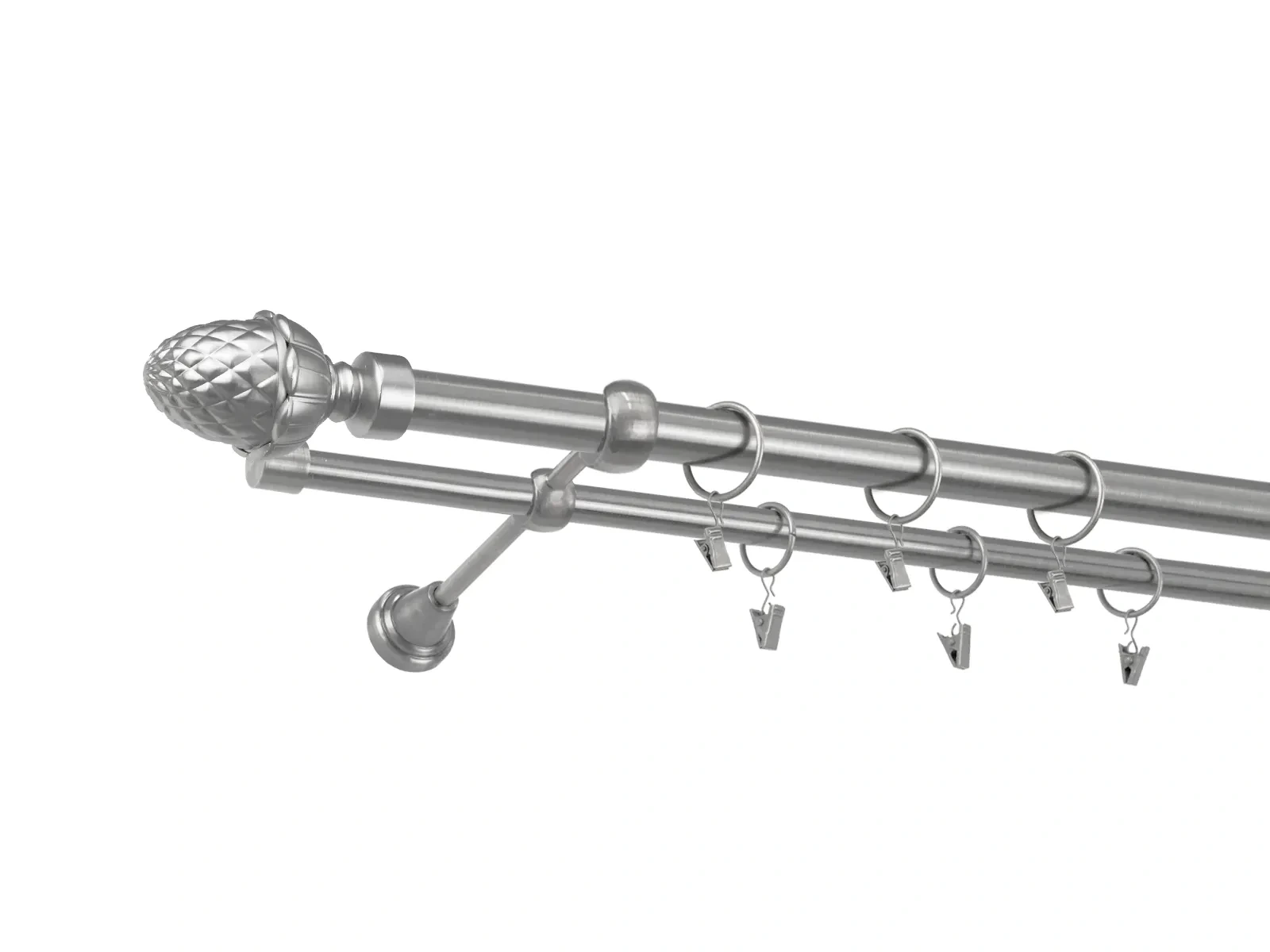 Kvalitné kovové garniže o priemere prednej tyče 25mm a zadnej 16mm. Všetky tyče, koncovky a držiaky sú s povrchovou úpravou galvanizácie.