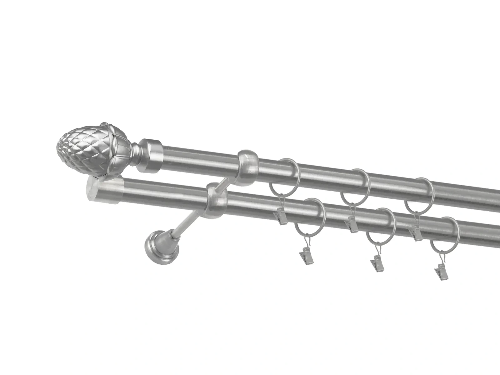 • Dĺžka 4400 mm - tyč 25mm - 2200mm - 4ks, spojka tyče – 2 ks, držiak dvojitý - 3ks, koncovka - 2ks, koncovka zadná (PULLO) - 2ks, krúžok so štipcom - 84ks (pri výbere parametra príslušenstvo s krúžkami so štipcom), skrutky a hmoždinky na montáž