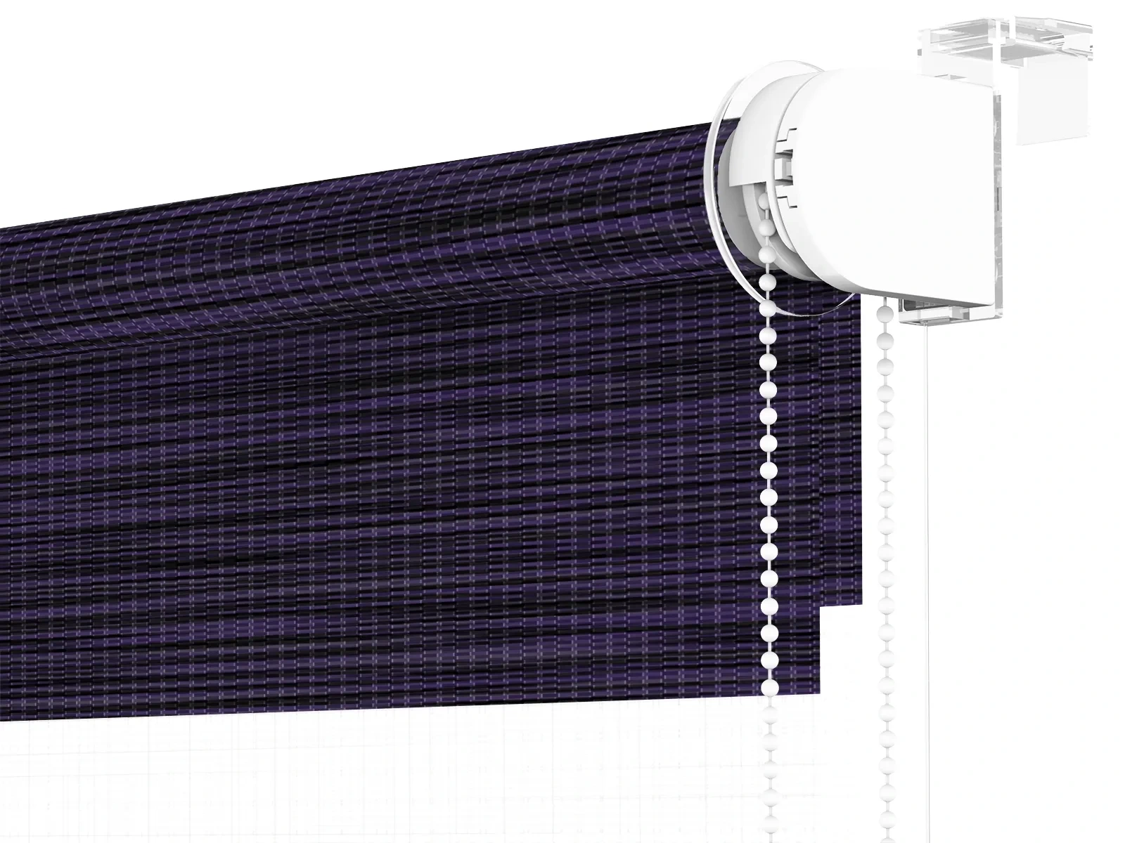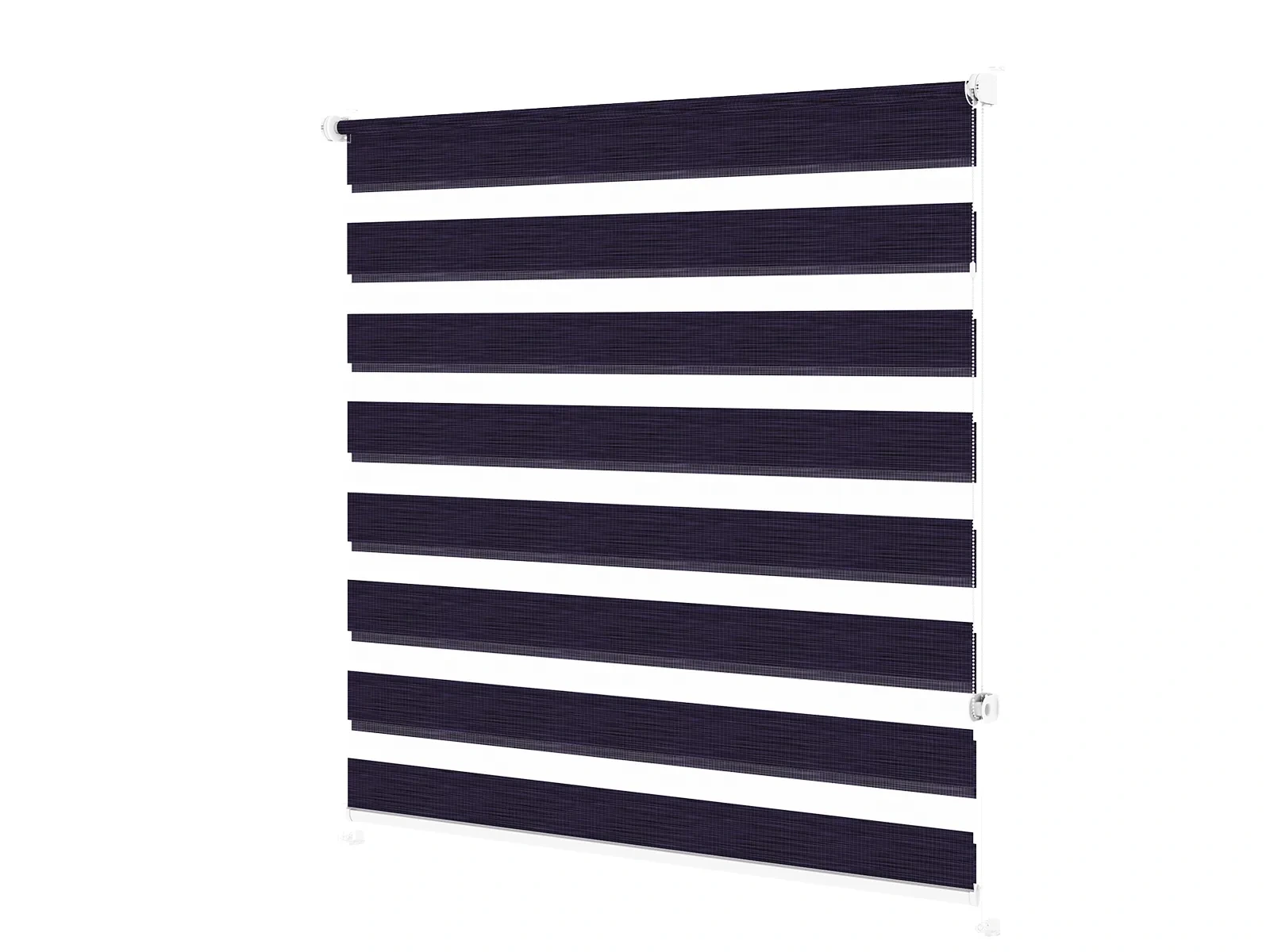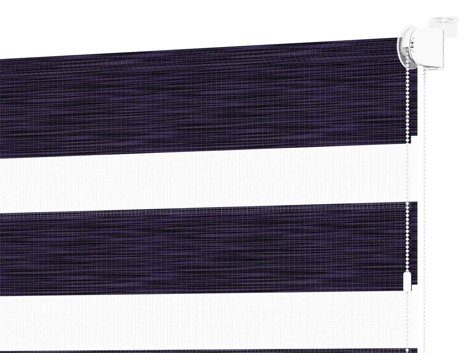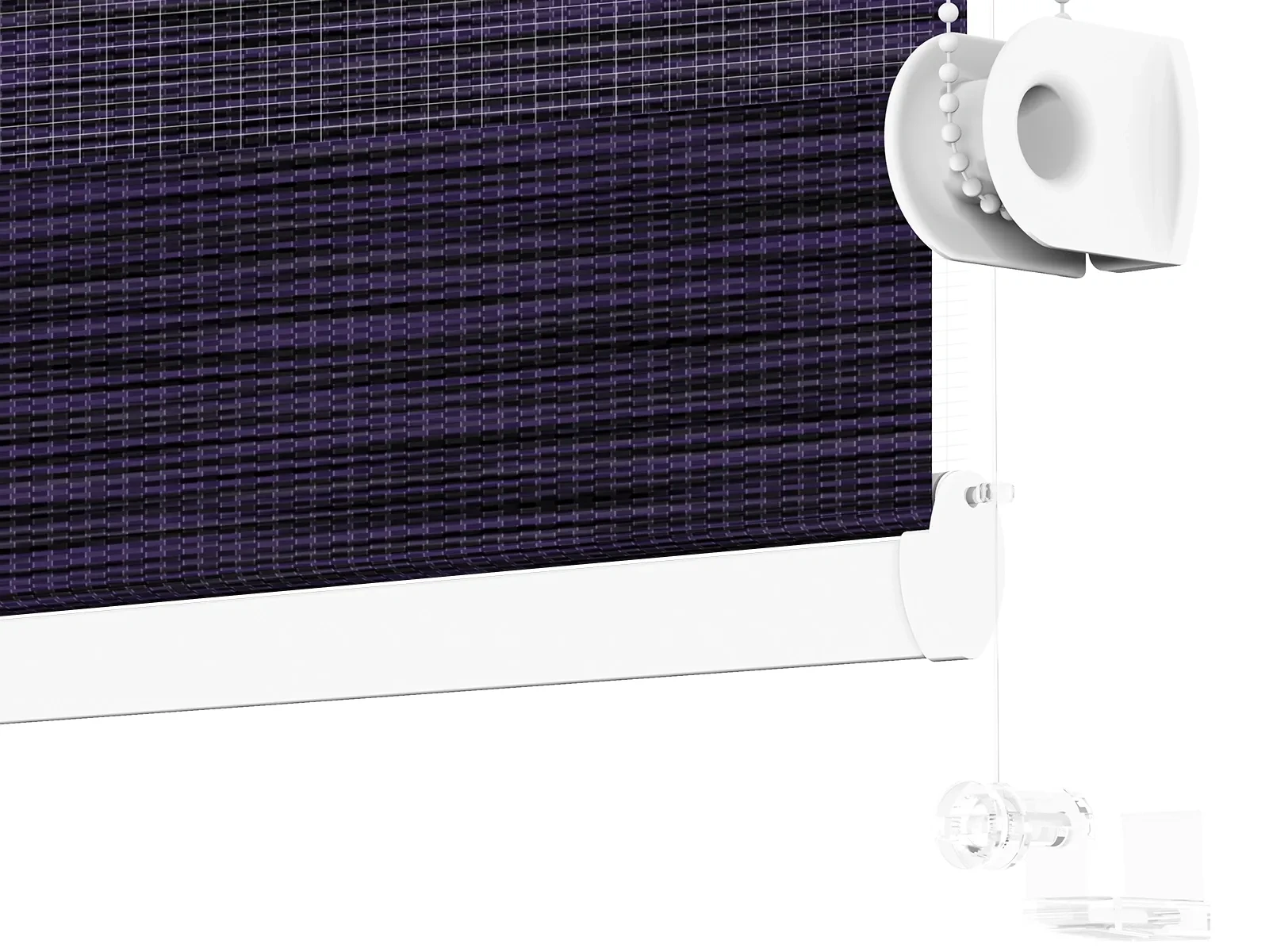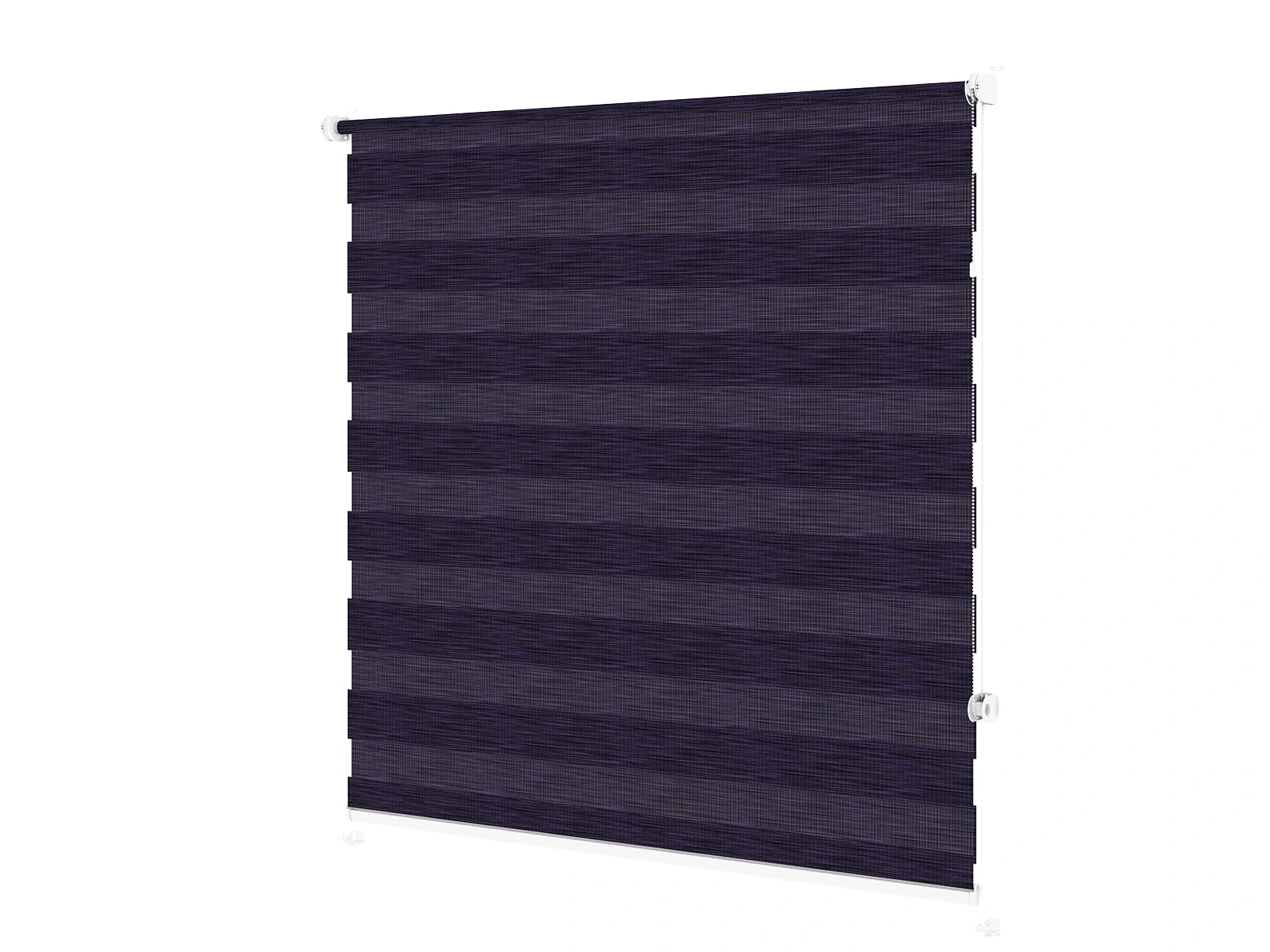 Roleta MINI - deň a noc - látka Maurícius 68 - tmavo fialová (čierny dekor)