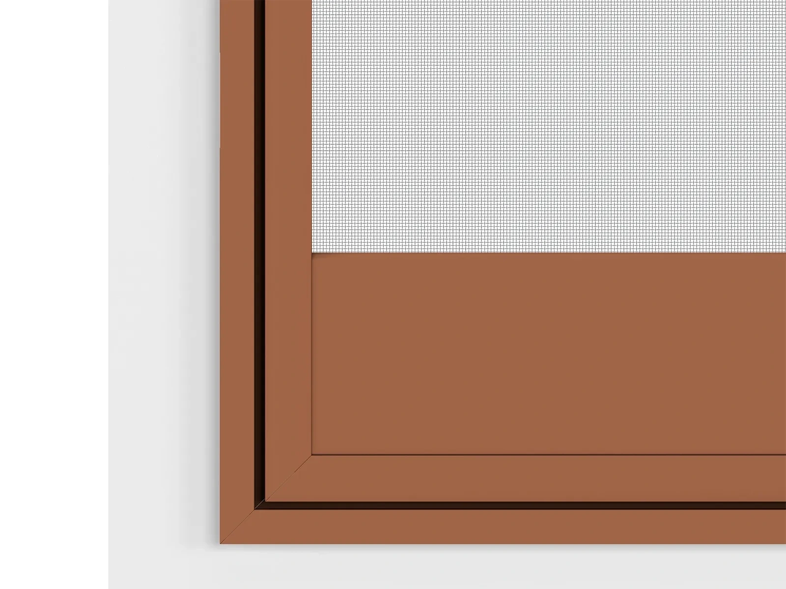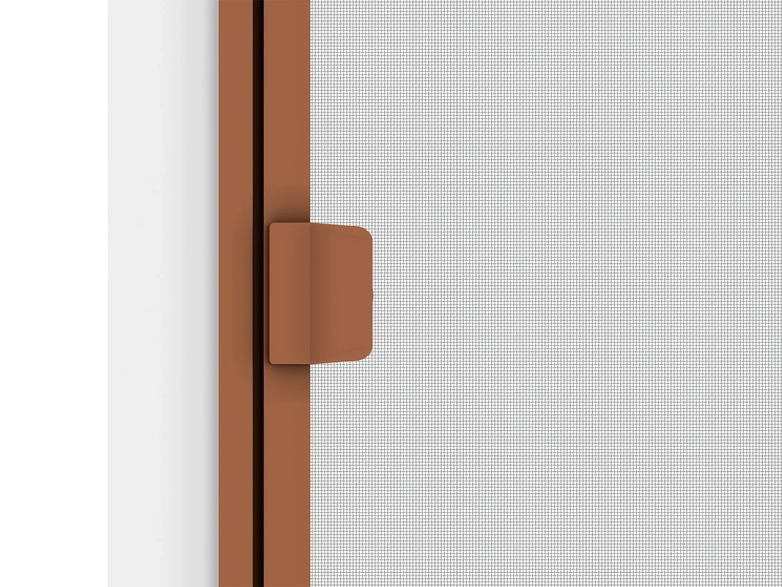 Systém SMART je konštrukčne premyslený do posledného detailu. Tvoria ho samostatné hliníkové nosné rámy, ktoré sú mimoriadne pevné, ľahké a odolné voči poveternostným vplyvom. Sieť je napnutá v rámci a celý systém funguje bez pántov – dvere sa zatvárajú magnetickým pásikom, ktorý zaručuje tesné a bezpečné uzatvorenie bez nutnosti použitia mechanických západiek. Po celom obvode sa nachádza tesnenie, ktoré spoľahlivo uzatvára priestor medzi rámom a sieťkou, čím účinne zabraňuje prenikaniu aj tých najmenších druhov hmyzu. Vďaka plynulej funkčnosti a kvalitnému spracovaniu je manipulácia s dverami SMART pohodlná, tichá a bez zadrhávania. K dispozícií rôzne farebné prevedenia podľa ponuky