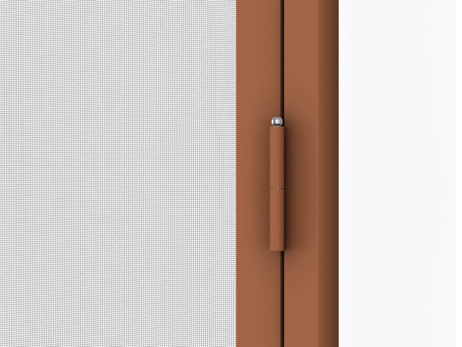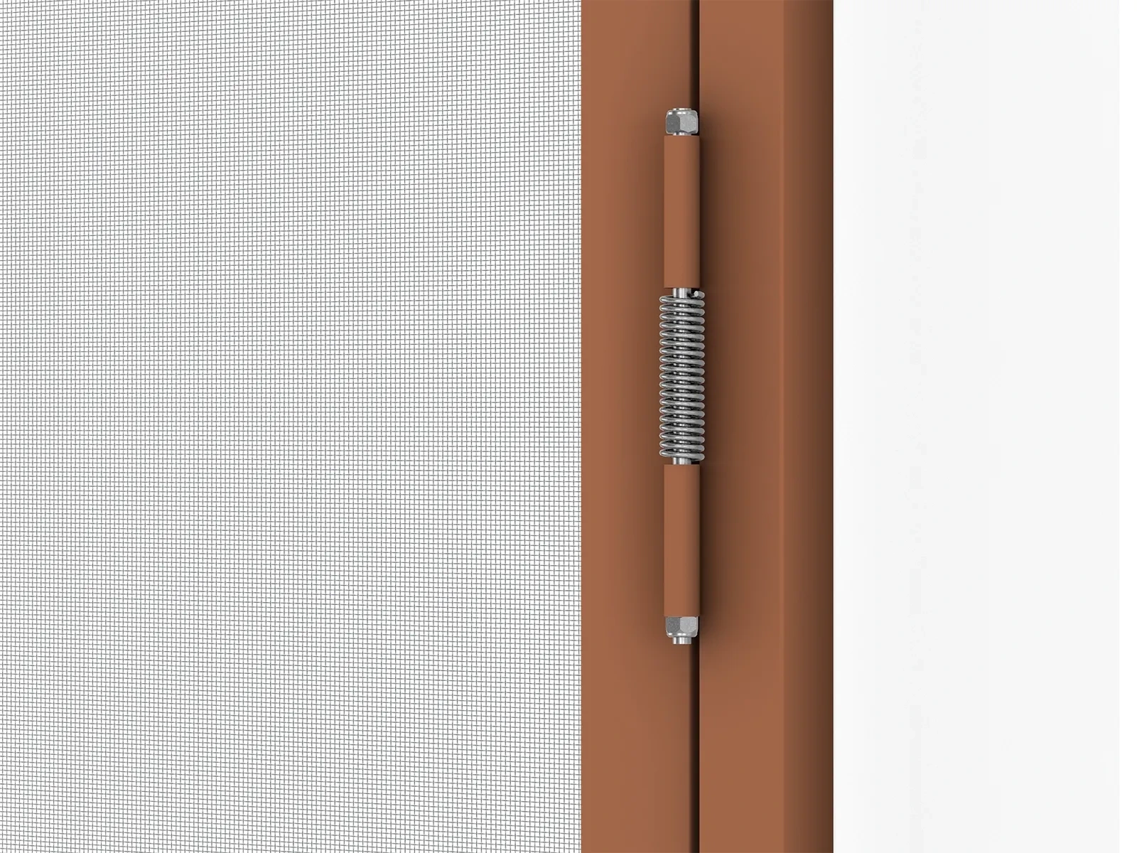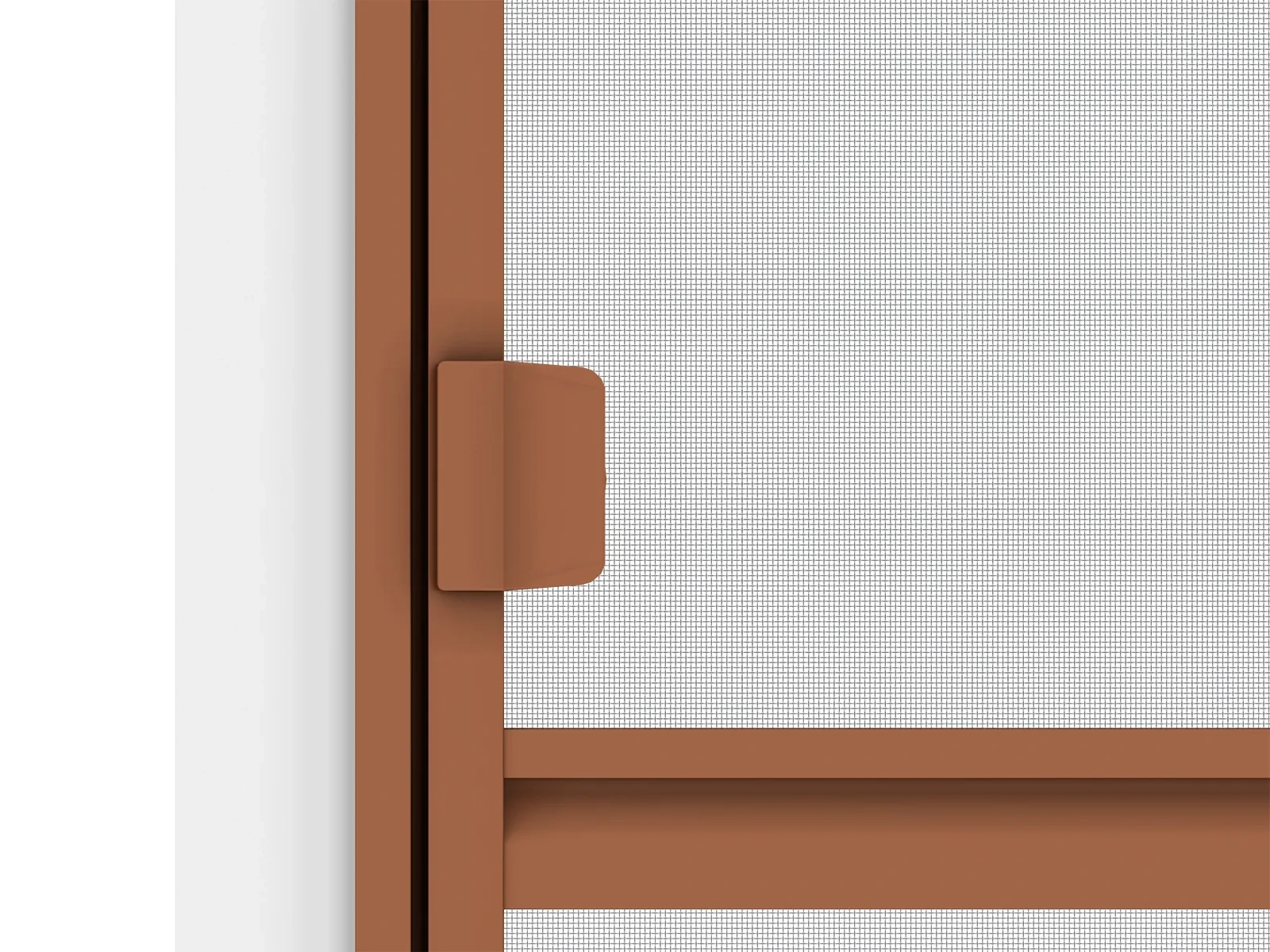 Systém SMART je konštrukčne premyslený do posledného detailu. Tvoria ho samostatné hliníkové nosné rámy, ktoré sú mimoriadne pevné, ľahké a odolné voči poveternostným vplyvom. Sieť je napnutá v rámci a celý systém funguje bez pántov – dvere sa zatvárajú magnetickým pásikom, ktorý zaručuje tesné a bezpečné uzatvorenie bez nutnosti použitia mechanických západiek. Po celom obvode sa nachádza tesnenie, ktoré spoľahlivo uzatvára priestor medzi rámom a sieťkou, čím účinne zabraňuje prenikaniu aj tých najmenších druhov hmyzu. Vďaka plynulej funkčnosti a kvalitnému spracovaniu je manipulácia s dverami SMART pohodlná, tichá a bez zadrhávania. K dispozícií rôzne farebné prevedenia podľa ponuky