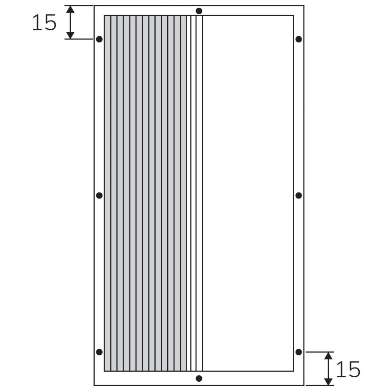 • Produkt je potrebné priskrutkovať minimálne na 6 miestach. Ak je produkt vyšší ako 150 cm umiestňujeme ďalšiu skrutku do stredu profilu. Do horizotálnych profilov umiestňujeme jednu skrutku na stred, v prípade že je produkt širší ako 150 cm umiestňujeme 2 skrutky 25cm od okraja.