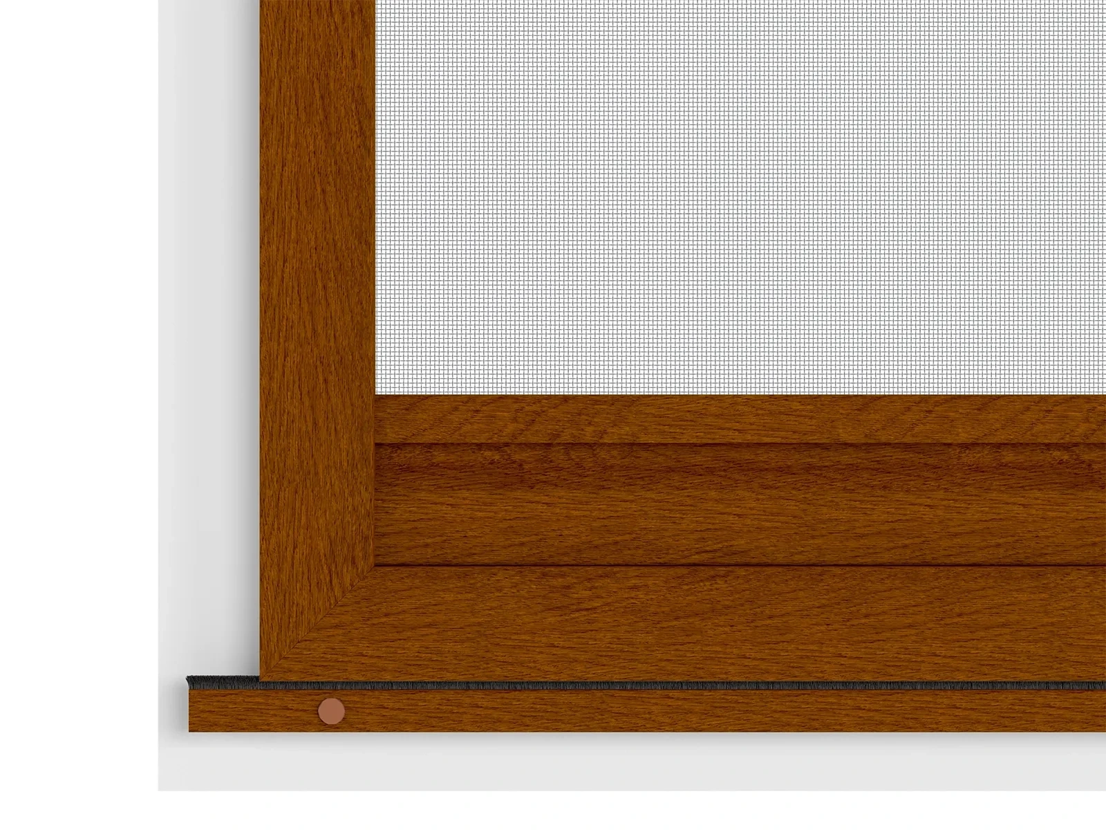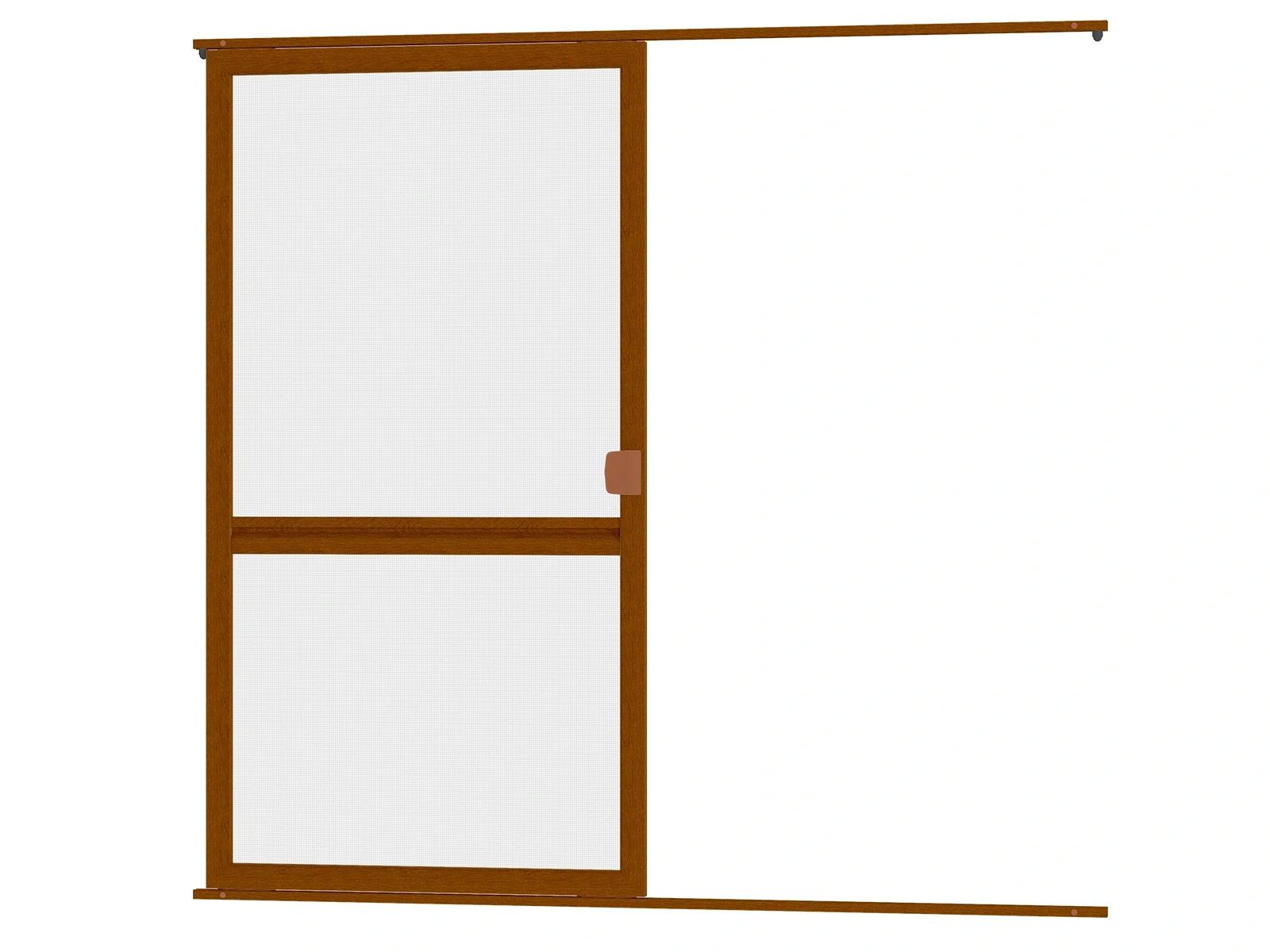 Na výrobu používame vodiaci profil z extrudovaného hliníka, ktorý je pevný, stabilný a odolný voči poškodeniu či korózií. Hliník je zároveň v rovnakej farebnej úprave ako samotné dvere, čo zabezpečuje jednotný a estetický vzhľad. K dispozícií rôzne farebné prevedenia podľa ponuky. Použitá sieťovina je z poplastovaného sklolaminátu. Aby bol chod dverí ešte plynulejší, do systému je zabudovaná jemná štetinka, ktorá pomáha pri hladkom kĺzaní a zároveň zabraňuje prenikaniu drobných druhov hmyzu, ako sú napríklad mravce. Vďaka tomuto riešeniu je manipulácia s dverami tichá a bezproblémová.