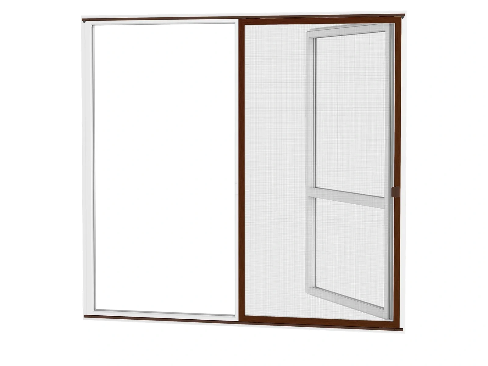 Na výrobu používame vodiaci profil z extrudovaného hliníka, ktorý je pevný, stabilný a odolný voči poškodeniu či korózií. Hliník je zároveň v rovnakej farebnej úprave ako samotné dvere, čo zabezpečuje jednotný a estetický vzhľad. K dispozícií rôzne farebné prevedenia podľa ponuky. Použitá sieťovina je z poplastovaného sklolaminátu. Aby bol chod dverí ešte plynulejší, do systému je zabudovaná jemná štetinka, ktorá pomáha pri hladkom kĺzaní a zároveň zabraňuje prenikaniu drobných druhov hmyzu, ako sú napríklad mravce. Vďaka tomuto riešeniu je manipulácia s dverami tichá a bezproblémová.