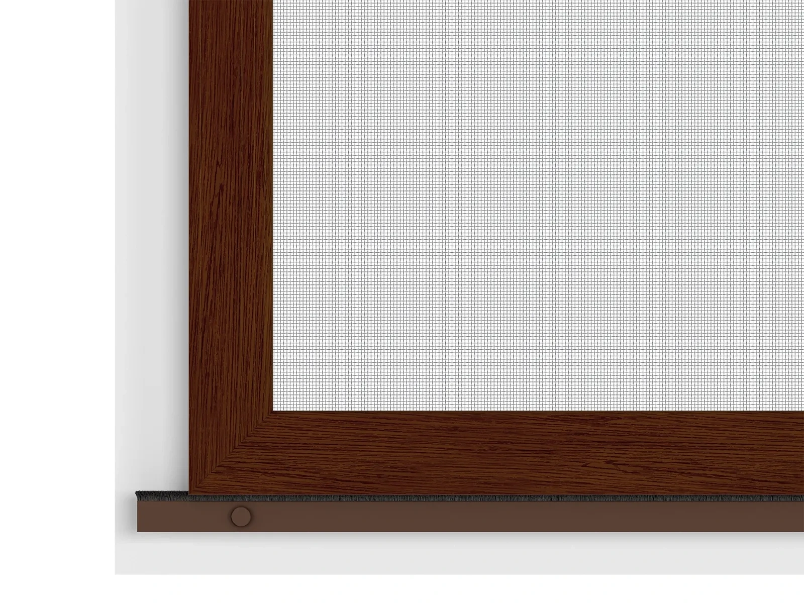 Na výrobu používame vodiaci profil z extrudovaného hliníka, ktorý je pevný, stabilný a odolný voči poškodeniu či korózií. Hliník je zároveň v rovnakej farebnej úprave ako samotné dvere, čo zabezpečuje jednotný a estetický vzhľad. K dispozícií rôzne farebné prevedenia podľa ponuky. Použitá sieťovina je z poplastovaného sklolaminátu. Aby bol chod dverí ešte plynulejší, do systému je zabudovaná jemná štetinka, ktorá pomáha pri hladkom kĺzaní a zároveň zabraňuje prenikaniu drobných druhov hmyzu, ako sú napríklad mravce. Vďaka tomuto riešeniu je manipulácia s dverami tichá a bezproblémová.