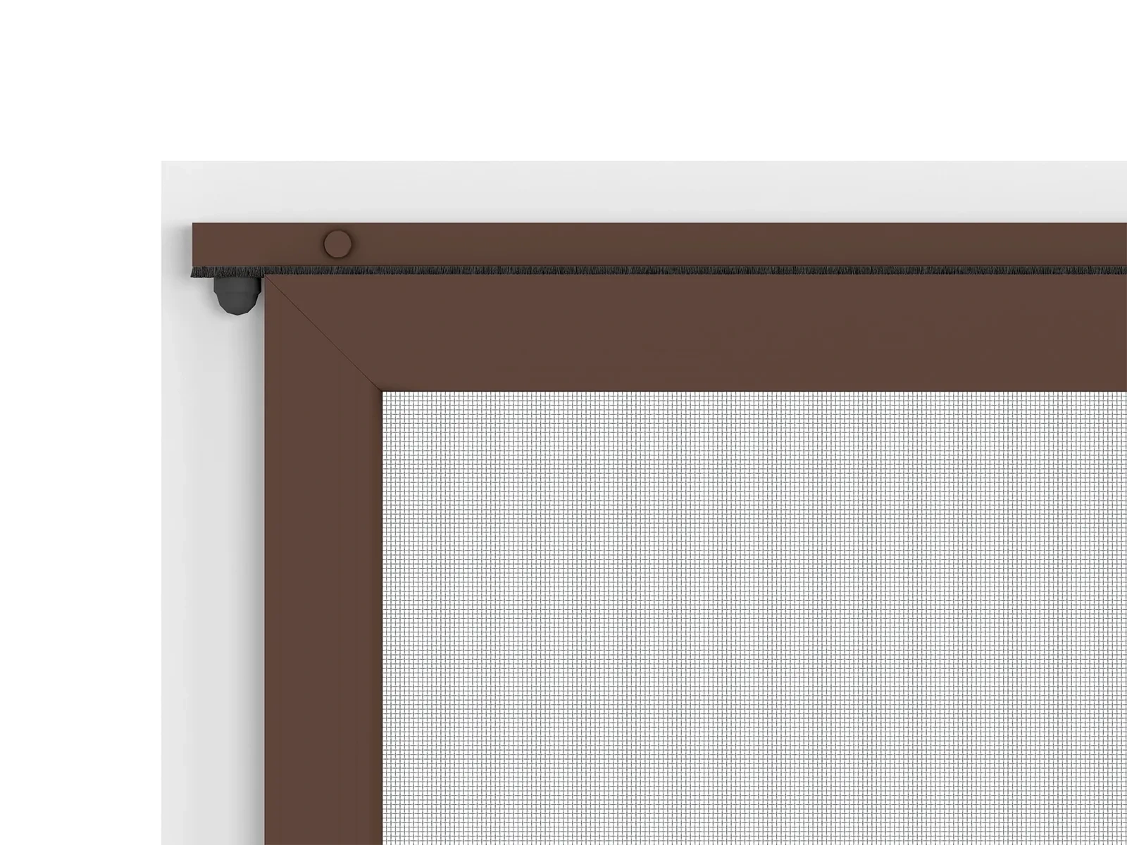 Na výrobu používame vodiaci profil z extrudovaného hliníka, ktorý je pevný, stabilný a odolný voči poškodeniu či korózií. Hliník je zároveň v rovnakej farebnej úprave ako samotné dvere, čo zabezpečuje jednotný a estetický vzhľad. K dispozícií rôzne farebné prevedenia podľa ponuky. Použitá sieťovina je z poplastovaného sklolaminátu. Aby bol chod dverí ešte plynulejší, do systému je zabudovaná jemná štetinka, ktorá pomáha pri hladkom kĺzaní a zároveň zabraňuje prenikaniu drobných druhov hmyzu, ako sú napríklad mravce. Vďaka tomuto riešeniu je manipulácia s dverami tichá a bezproblémová.