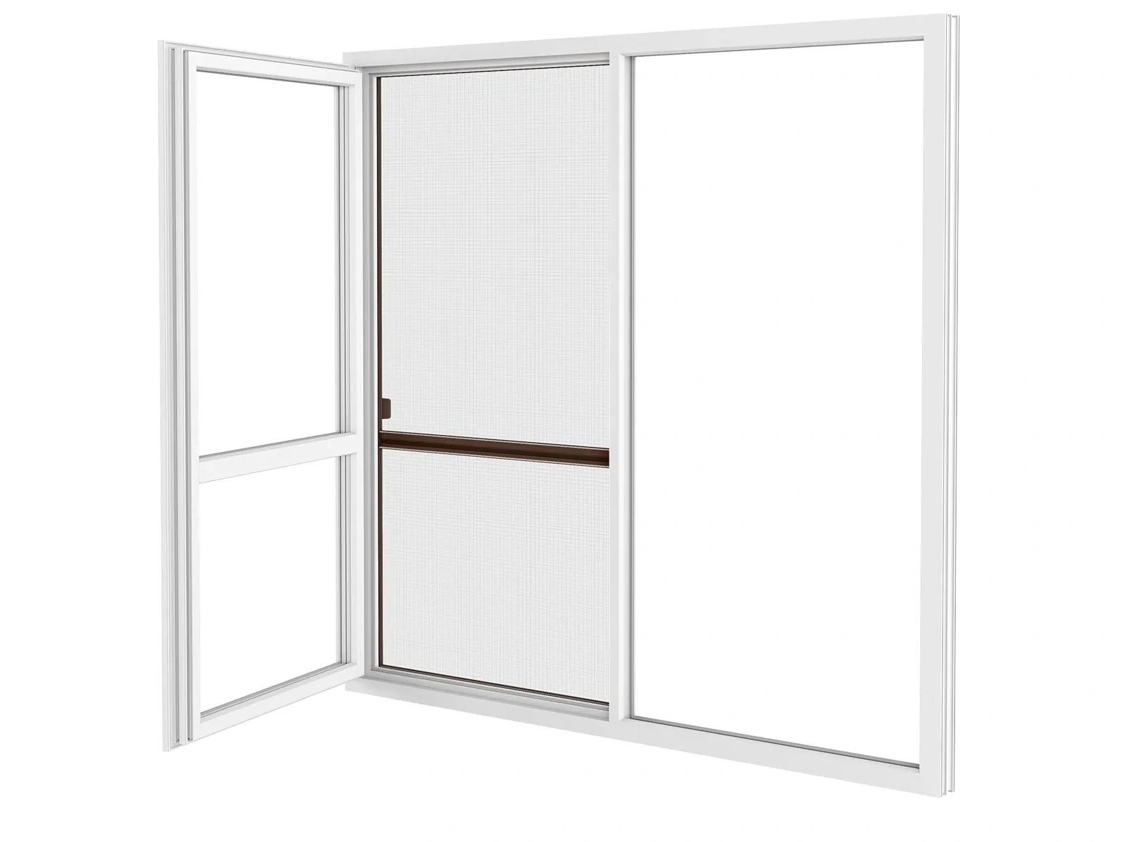 Na výrobu používame vodiaci profil z extrudovaného hliníka, ktorý je pevný, stabilný a odolný voči poškodeniu či korózií. Hliník je zároveň v rovnakej farebnej úprave ako samotné dvere, čo zabezpečuje jednotný a estetický vzhľad. K dispozícií rôzne farebné prevedenia podľa ponuky. Použitá sieťovina je z poplastovaného sklolaminátu. Aby bol chod dverí ešte plynulejší, do systému je zabudovaná jemná štetinka, ktorá pomáha pri hladkom kĺzaní a zároveň zabraňuje prenikaniu drobných druhov hmyzu, ako sú napríklad mravce. Vďaka tomuto riešeniu je manipulácia s dverami tichá a bezproblémová.