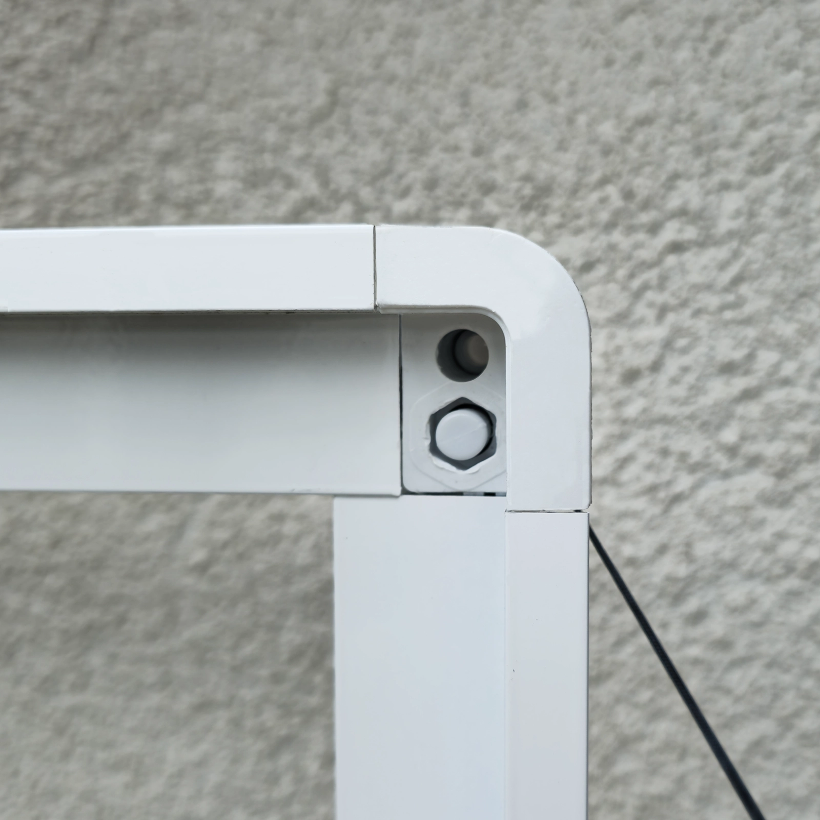Pri základnom modely sú rezané pod 90° uhlom a rohový spájač je plastový a viditeľný. Napínanie je šnúrou v rohovom spájači.